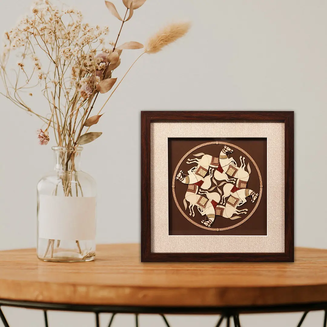 This Horse-Puzzle Wall Hanging is a captivating piece, featuring horses intricately arranged in a continuous circular manner. The artistry creates a visually enchanting puzzle-like effect, emphasizing the seamless connection between the horses. The circular arrangement symbolizes unity, continuity, and the perpetual cycle of life. The precision in design and placement showcases meticulous craftsmanship.