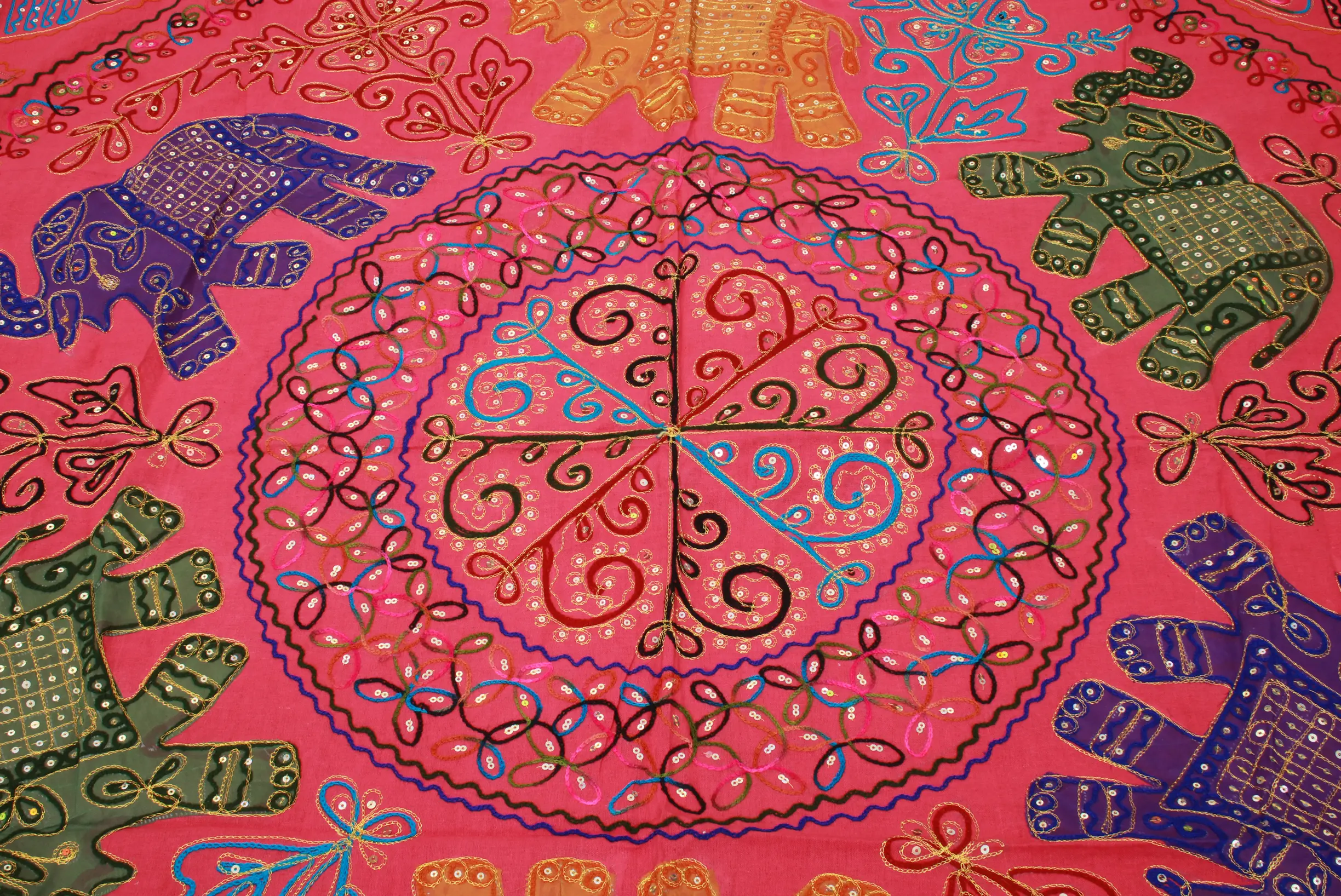 Printed Bedspread from Gujarat with Applique Embroidered Camels