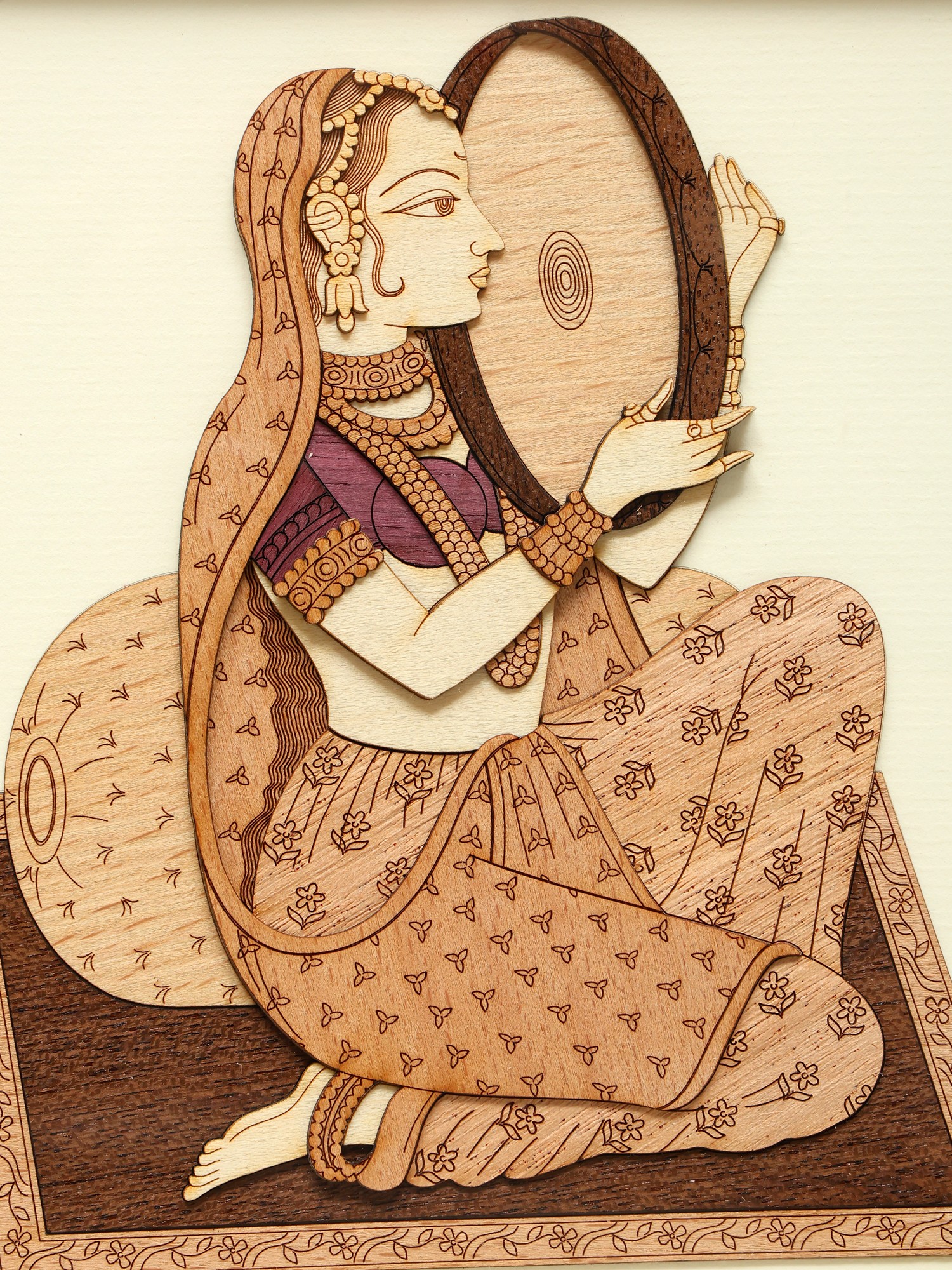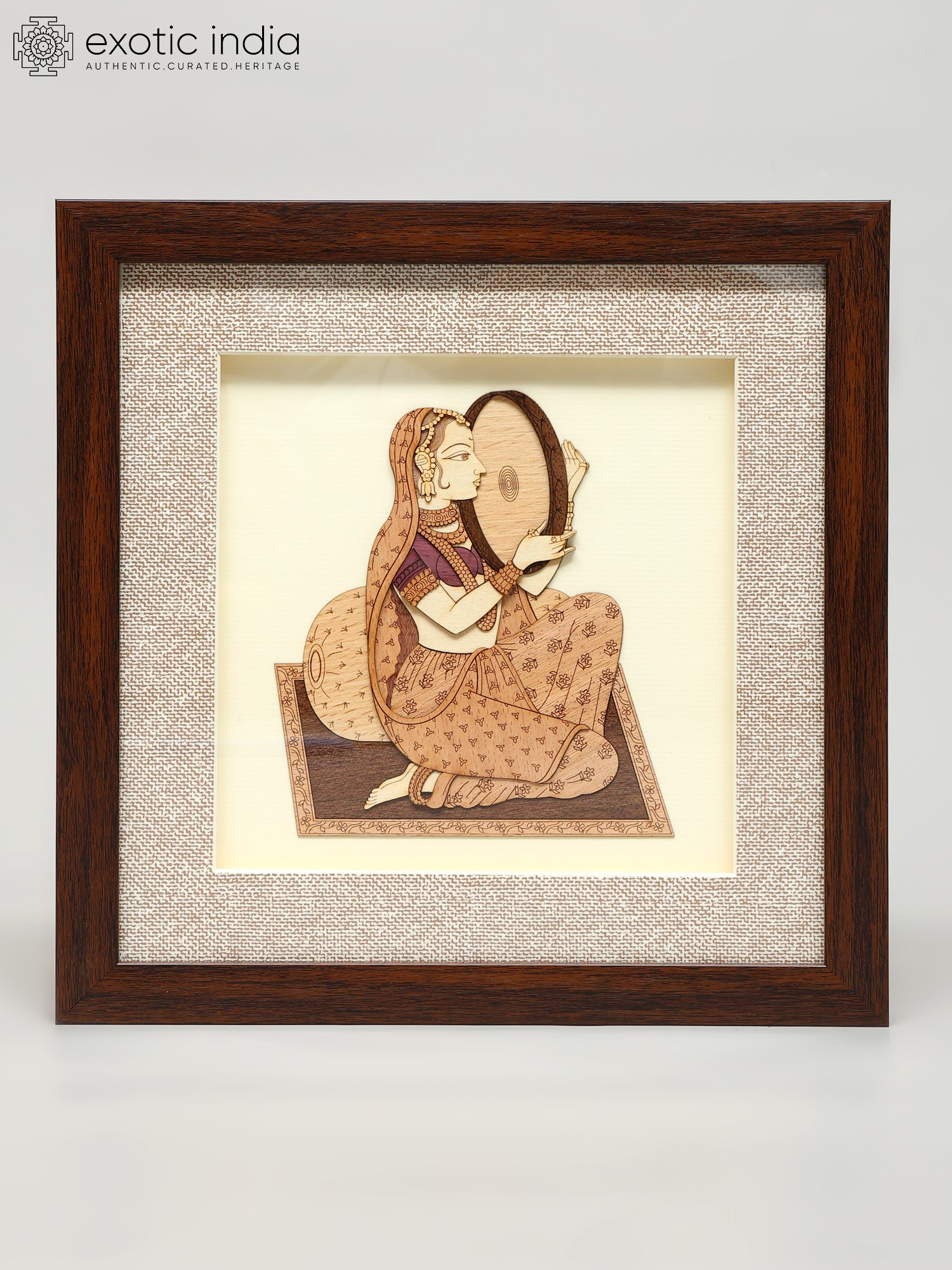 Goddess Lakshmi | Wood Carved Frame | Wall Hanging