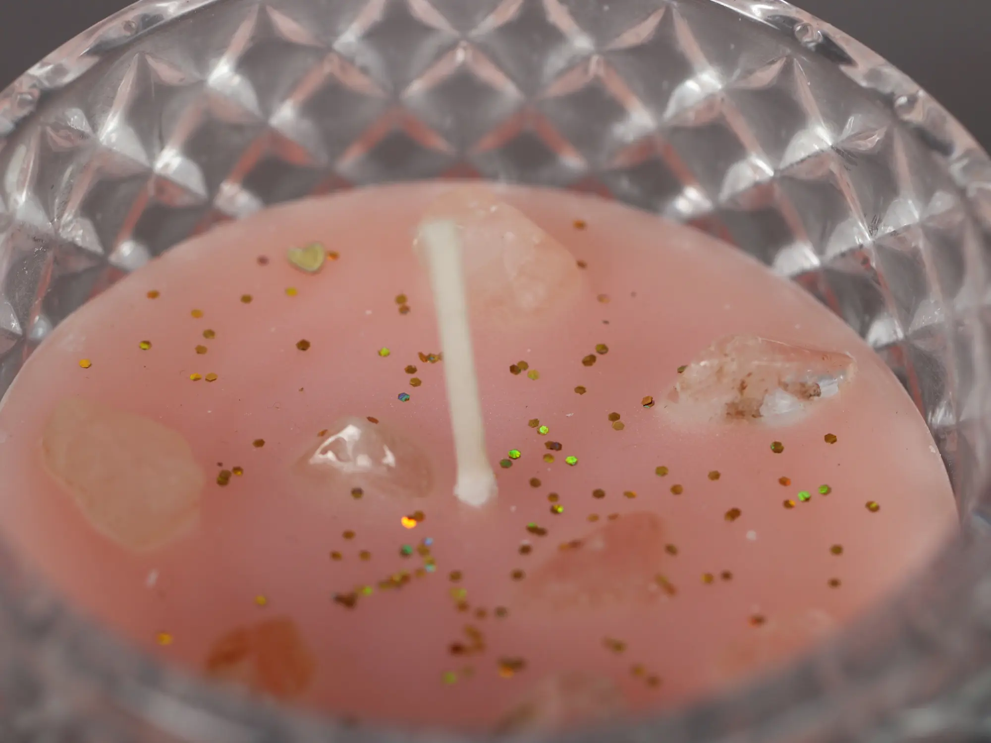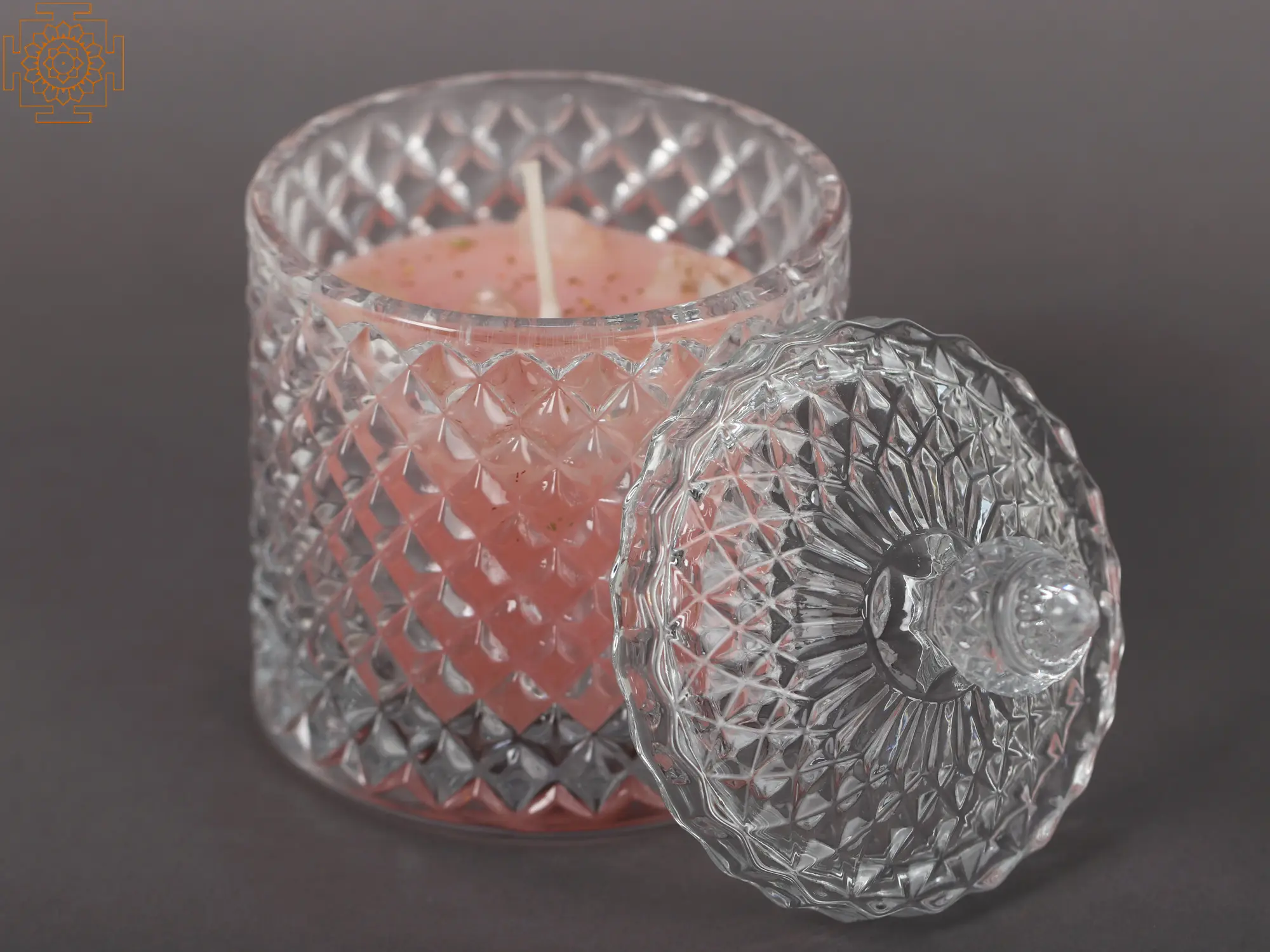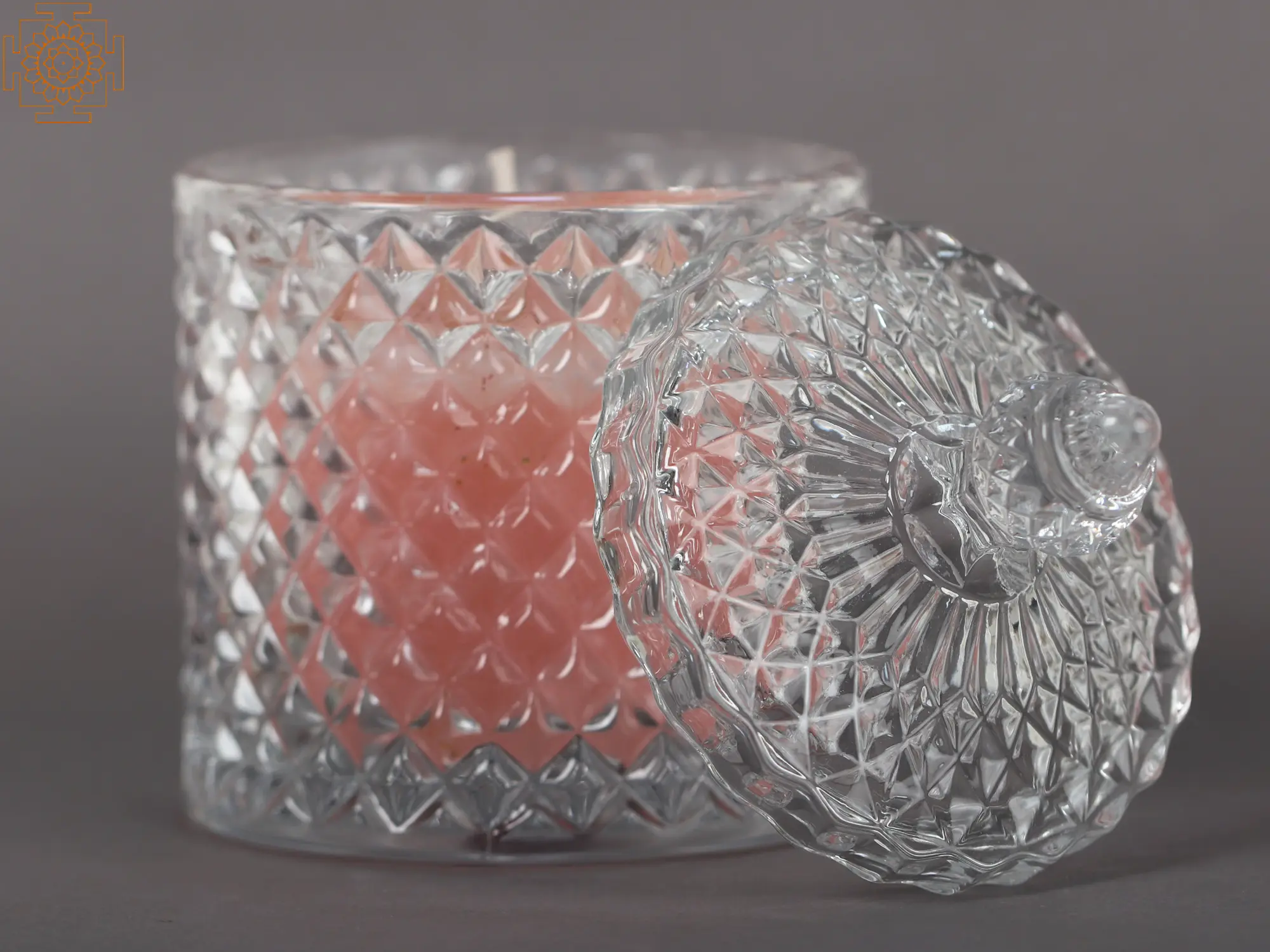 This Infused Candle Jar with a Gemstone Crystal is an ingenious piece of table decor that combines the lovely aroma of a candle with the science of prism and reflection. The glass jar with pentagonal elevations as surface patterns emits a mysterious light. The candle is cleverly placed within the jar, allowing the light to bounce over its rough surface. Through the prism of the glass, it generates a symphony of sparkles. The jar also comes with a lid of the same design and material to save the candle from acquiring dust when not in use. The combination of the delicate glow of the pink-infused candle and the intrinsic elegance of the glass transports you to a land of tranquility and enchantment. This table décor has been skillfully designed to convey tranquility to the beholder and will be curated by those seeking a peaceful light to relax their thoughts.