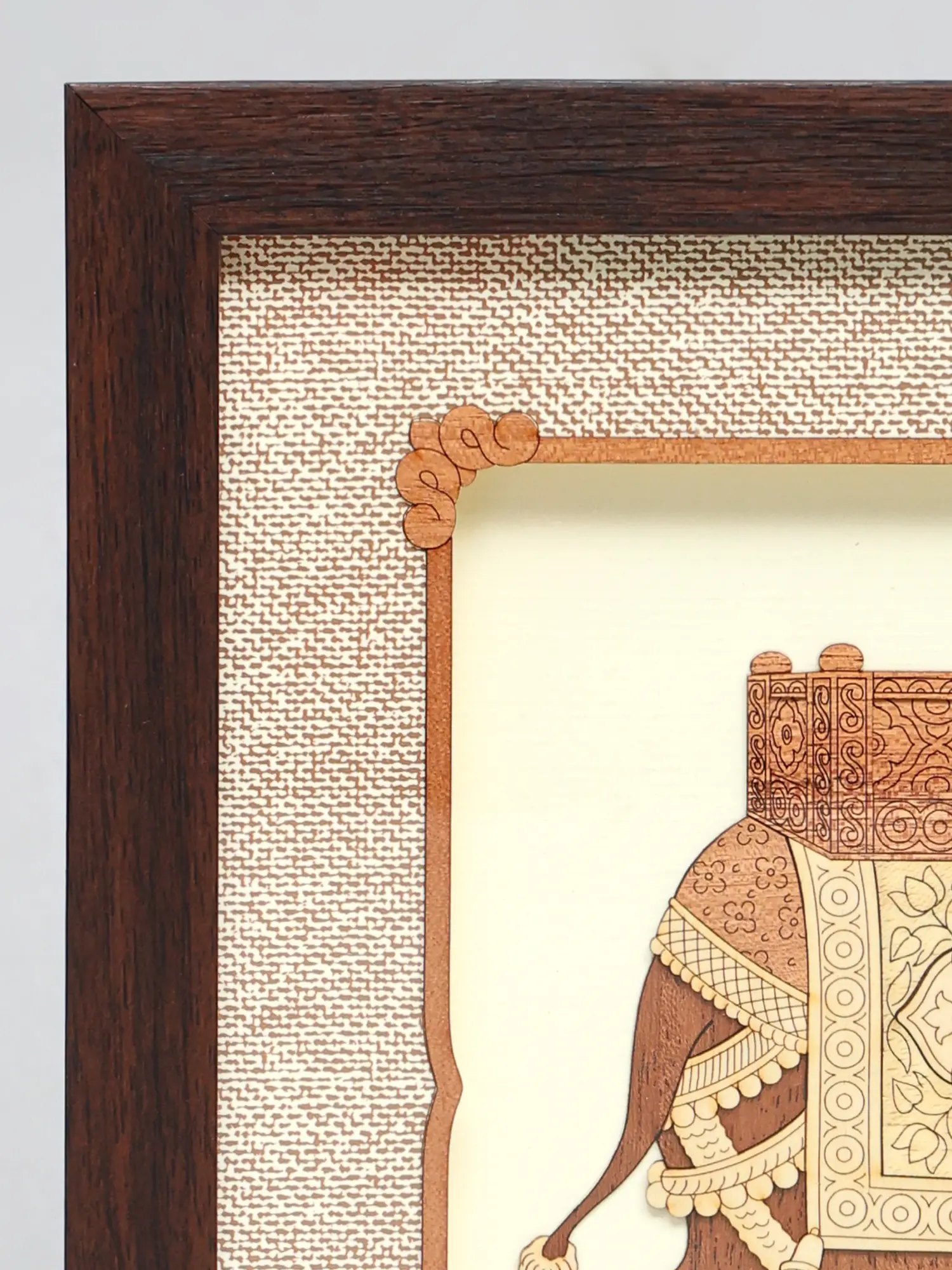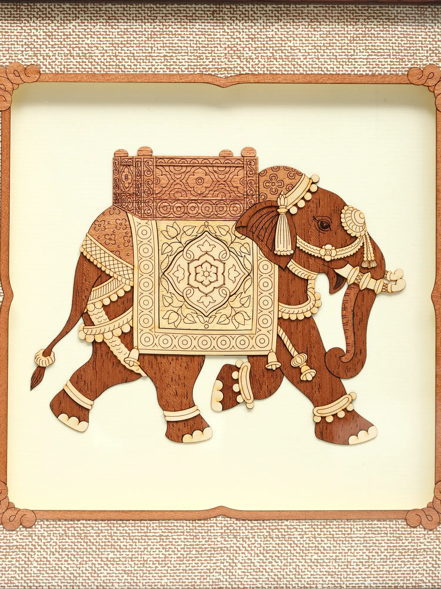 Royal Elephant | Wood Carved Frame | Wall Hanging