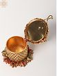 This exquisite sindoor box is more than just a container; it's a statement piece that adds a touch of regal elegance to any space. Crafted from high-quality brass and adorned with meticulous multicolor stonework, this box radiates sophistication and charm. The intricate detailing and rich golden hue make it a perfect blend of traditional craftsmanship and modern aesthetics. It's the ideal addition to your dressing table or puja room, reflecting your refined taste and appreciation for handcrafted beauty. The compact size makes it easy to store and display, allowing you to keep your sindoor safe and stylishly accessible.