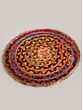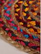 The fusion of jute's natural texture with the recycled cloth's diversity not only adds visual richness but also contributes to reducing environmental impact. This handcrafted table mat not only adorns spaces with its lively hues but also serves as a testament to the transformative power of repurposed materials, promoting eco-friendly choices in everyday living.