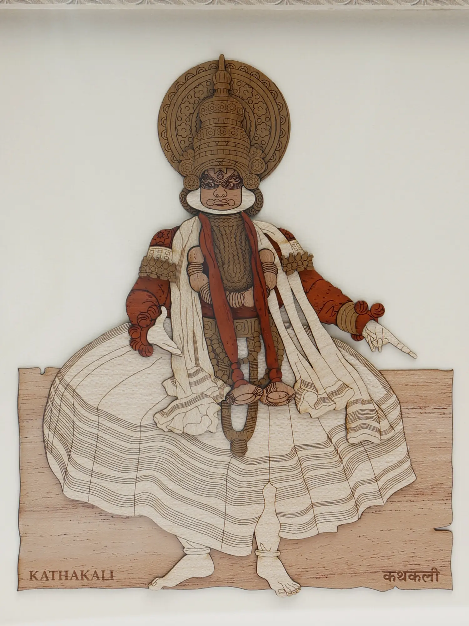 This masterpiece not only graces your wall but also protects the tradition of Kathakali, making it a conversation starter and an everlasting emblem of artistic finesse.