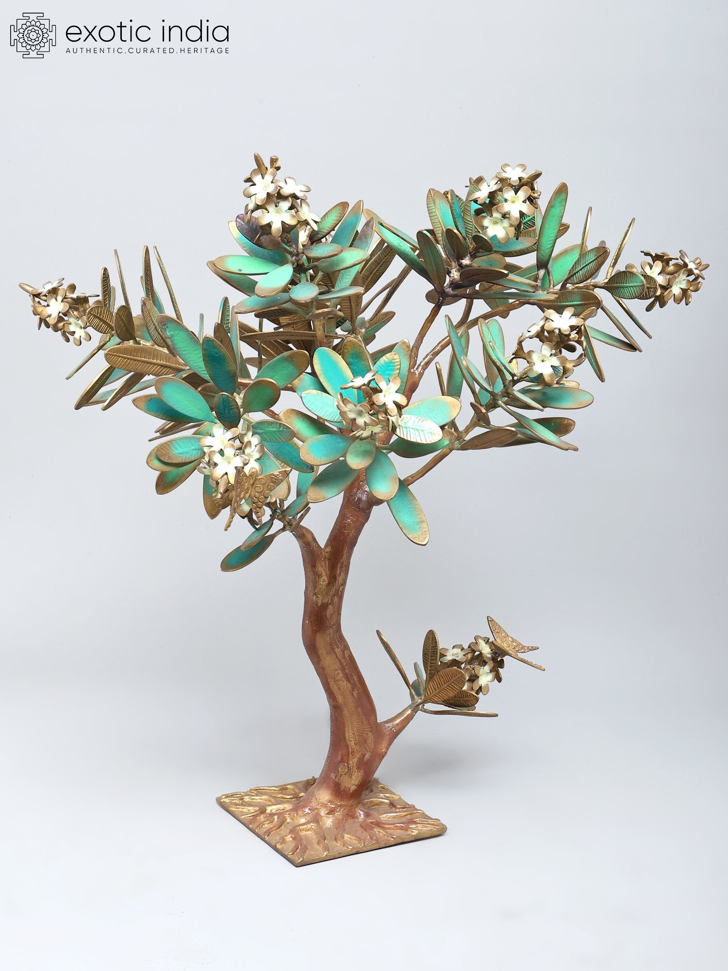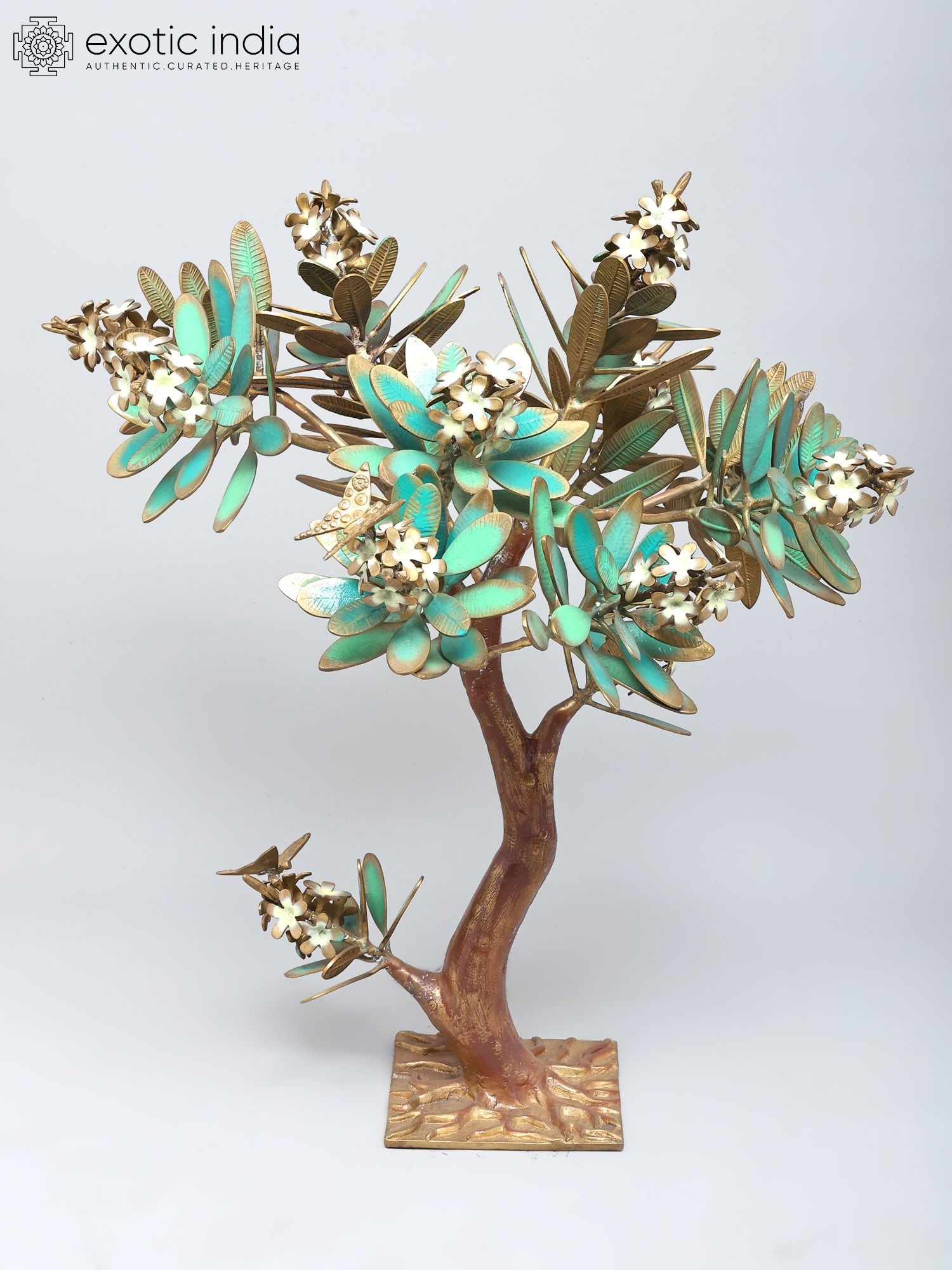 19" Brass Tree of Life Sculpture with Inlay Work and Stand