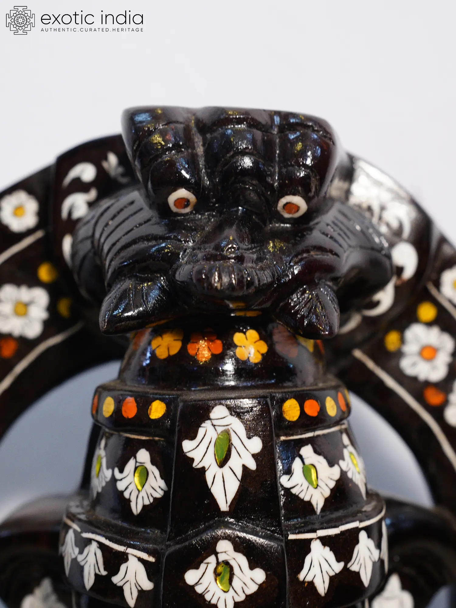 Adorned with exquisite, multi-colored floral inlay patterns on the body and base.