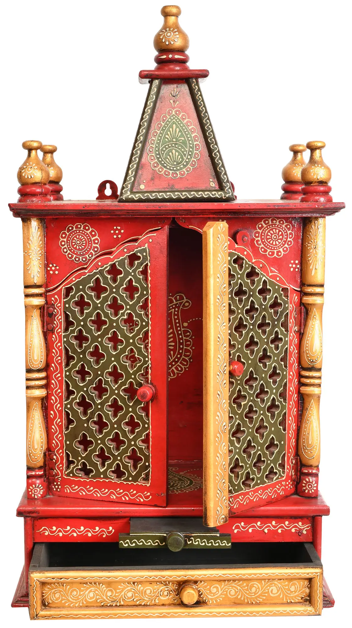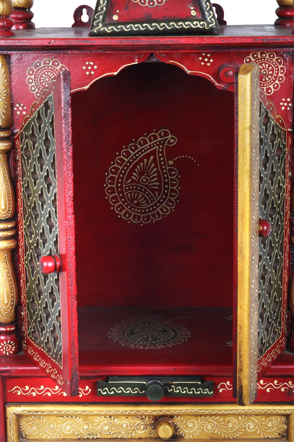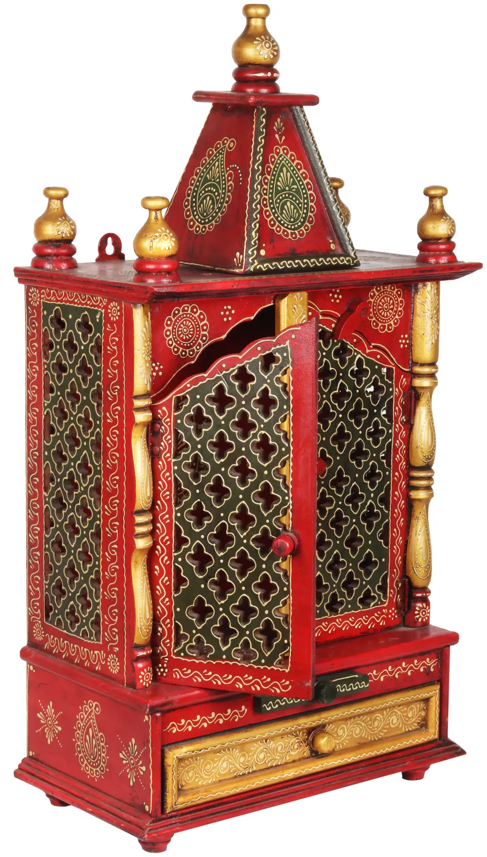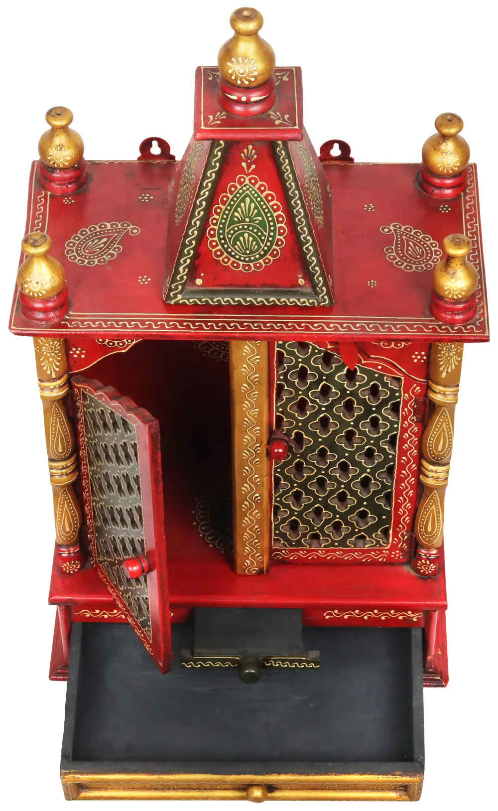 Wooden Ram Darbar Temple - 48 Inches with Intricate Inlay Design