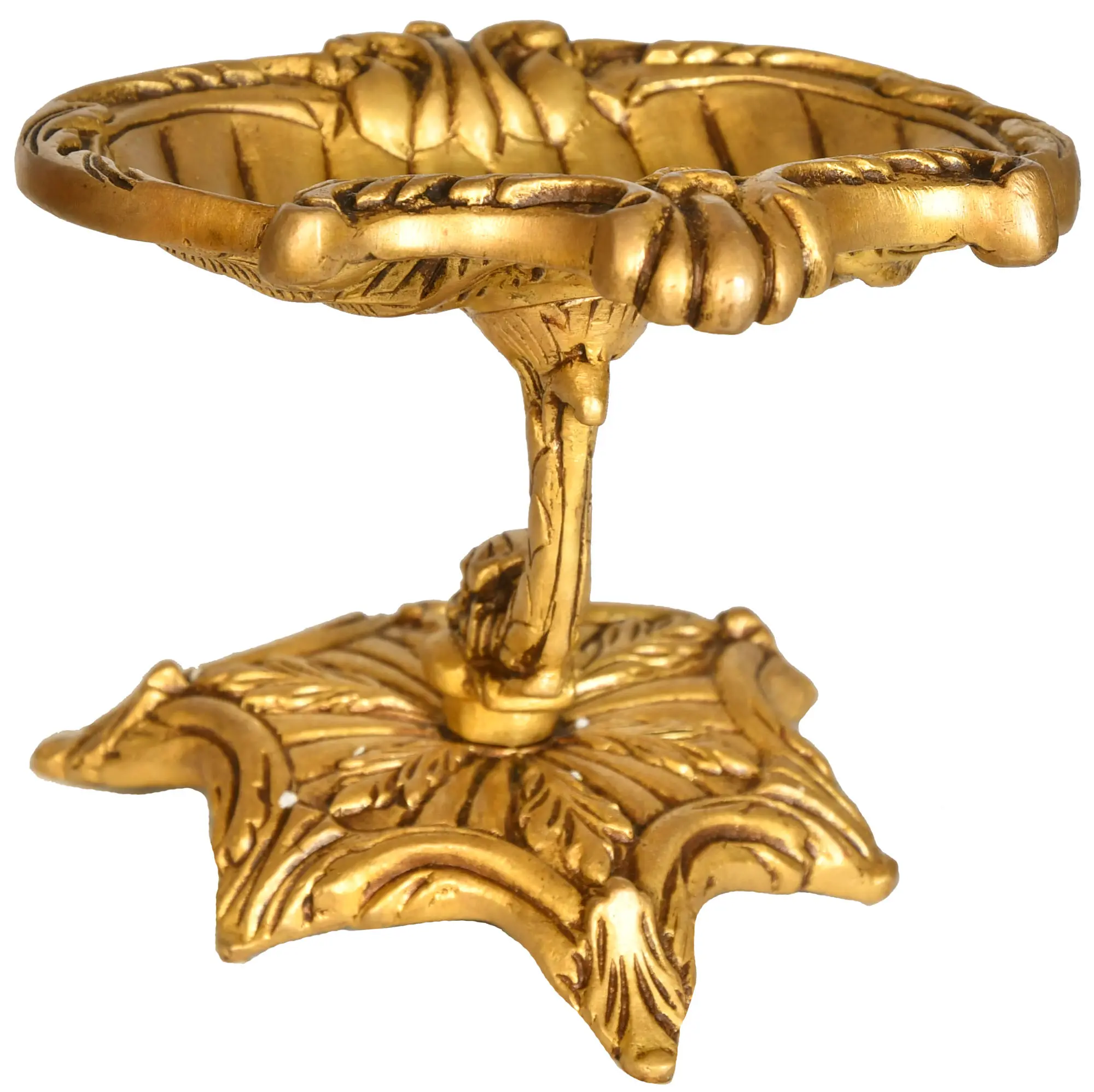 Burning incense and letting the smoke dissipate is a sacred ritual in Hinduism. It is believed that the smoke of the incense reached the almighty in the form of offerings. Devotees of various Gods and Goddess burn incense whenever to offer prayers. This brass incense tray is designed to serve as a platform to burn incense and complete the prayer ritual. The most striking part of this tray is its leaf-like design, which allows the ash from the incense to be collected in one place. The leaf is placed on a stand that resembles antique designs on the pillars from the temples of Europe. This leaf-shaped incense stick stand is a unique way of utilizing creativity with spirituality and bringing out a unique piece of art.