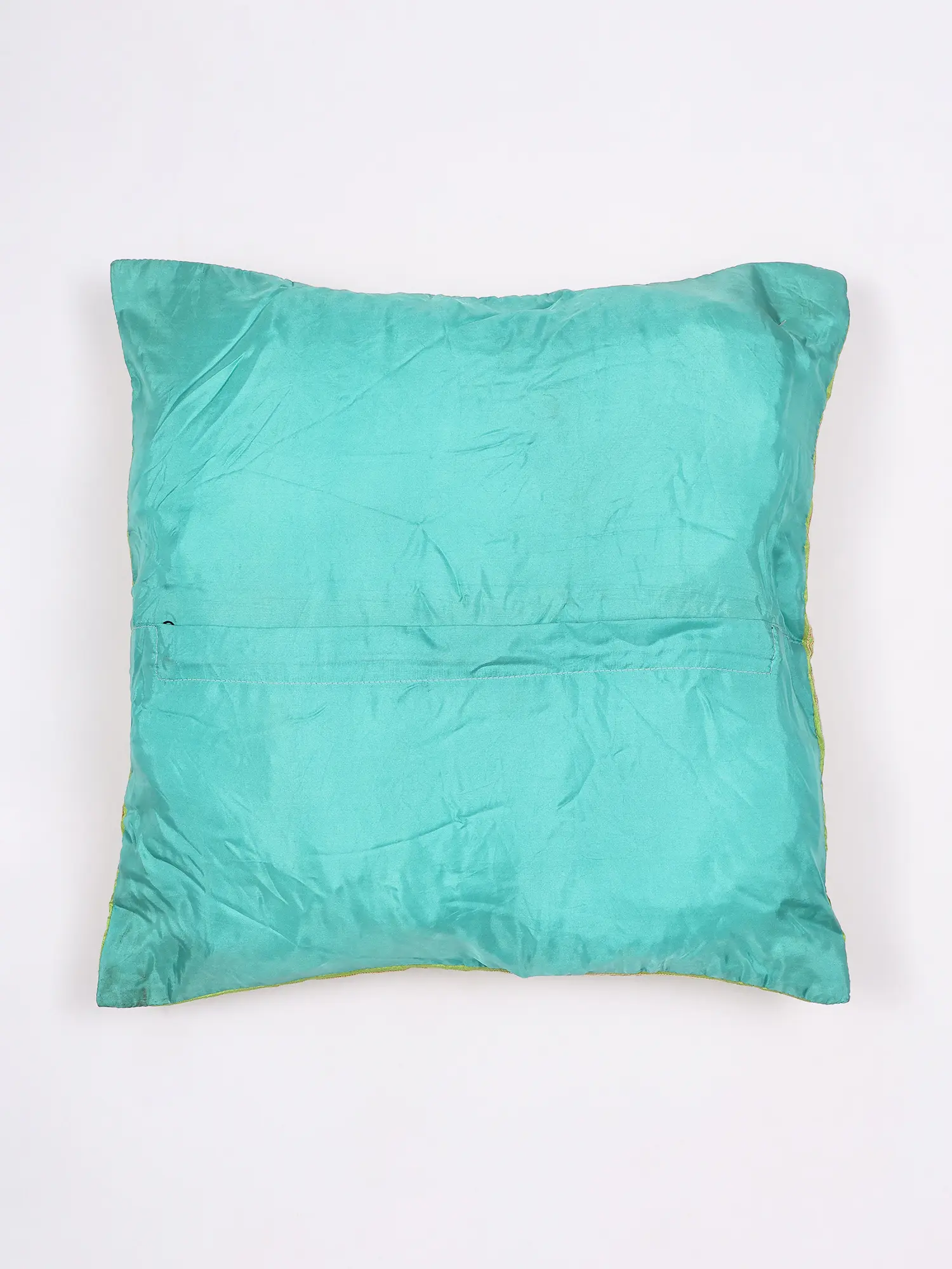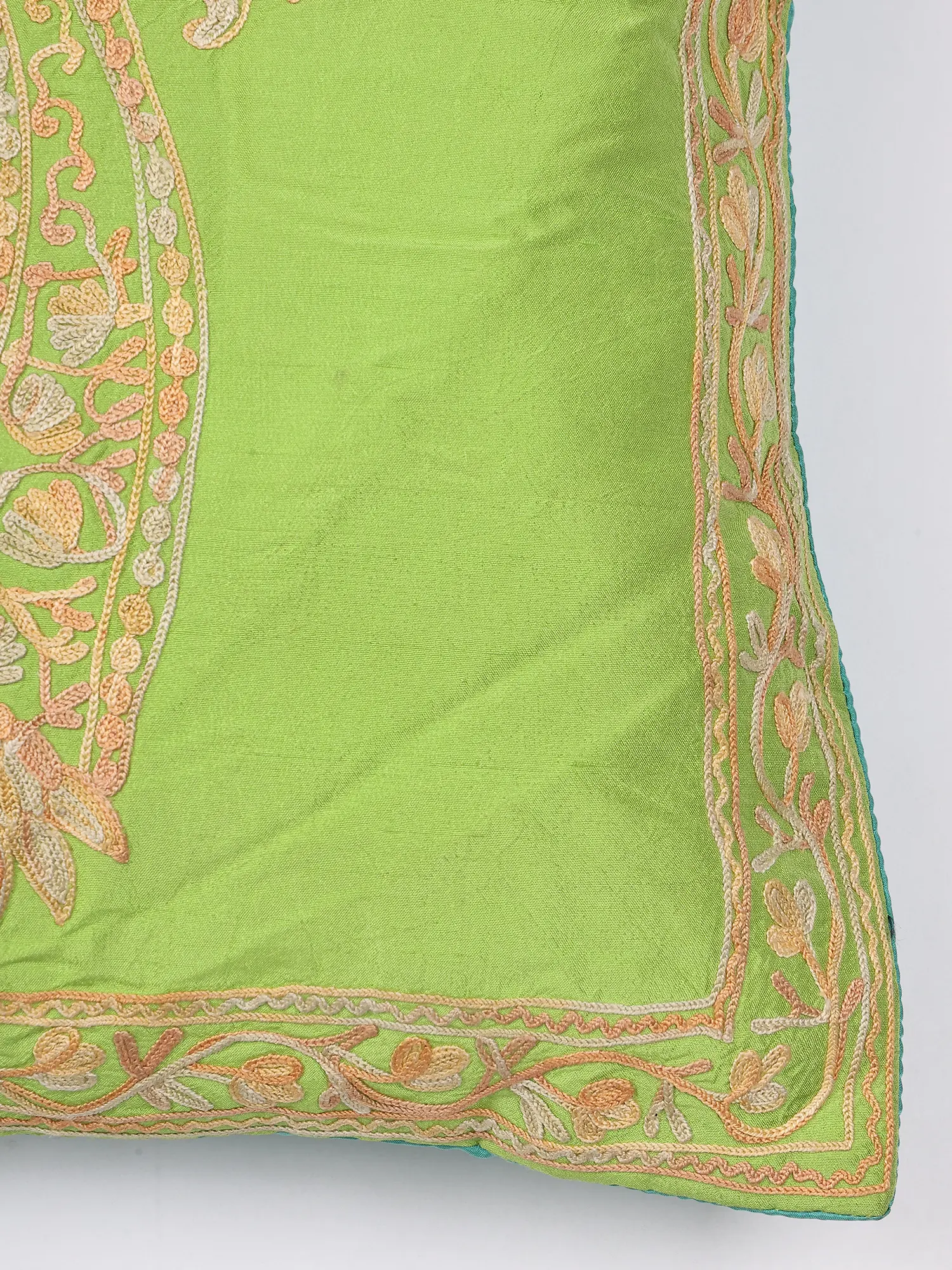 The vibrant macaw-green hue serves as a breathtaking canvas for the meticulously detailed Aari embroidery that adorns its surface. Delicate paisley patterns, rendered in soft, complementary threads, create an enchanting visual narrative. The generous 16-inch square dimensions provide a substantial presence, making it a focal point of any arrangement. You'll appreciate the fine finishing, including a subtly ornate border that frames the central design, adding an extra layer of elegance.