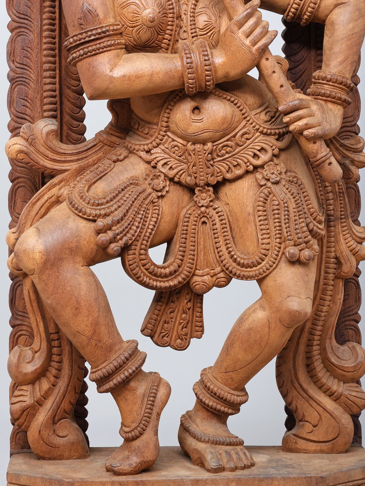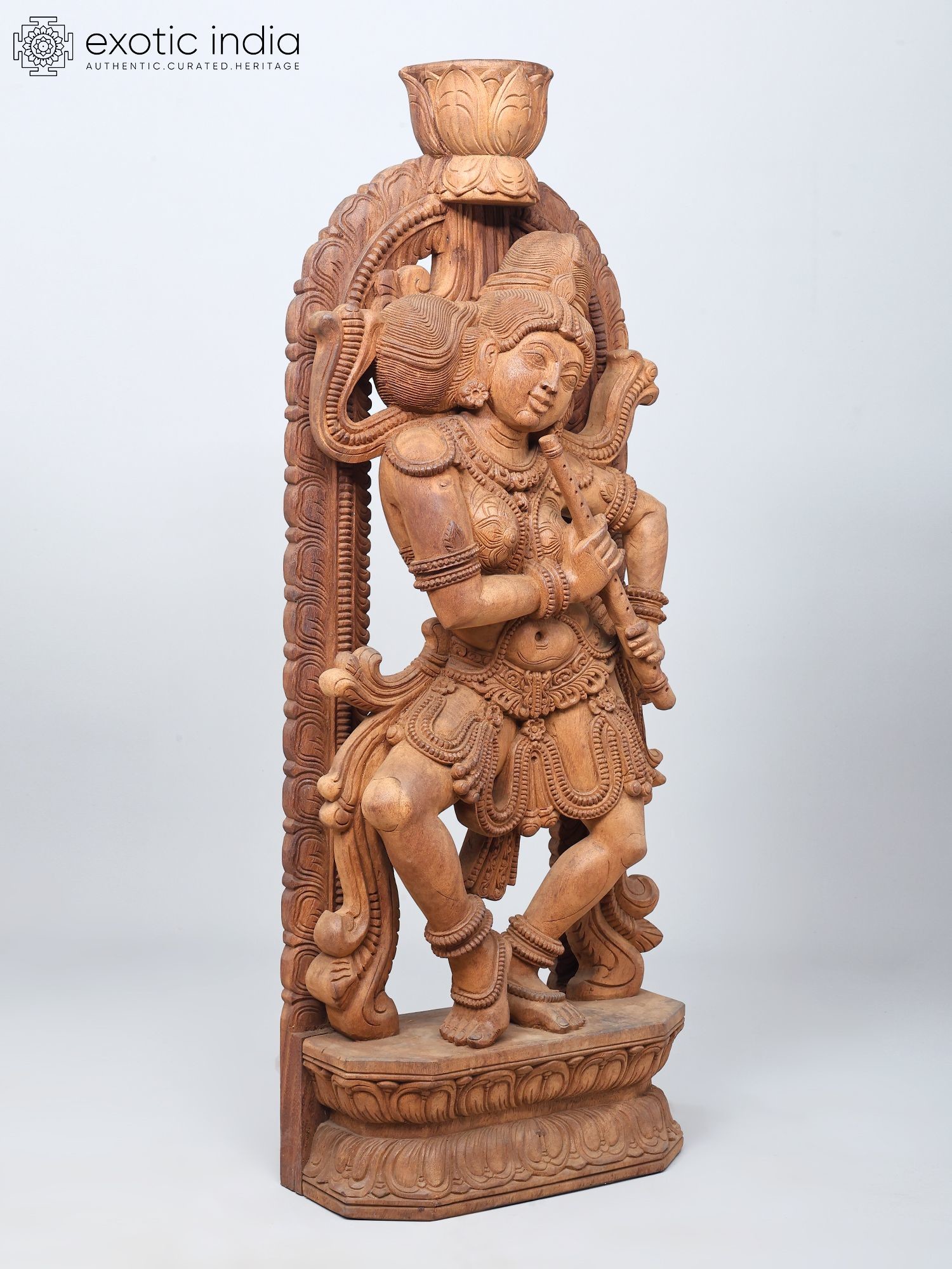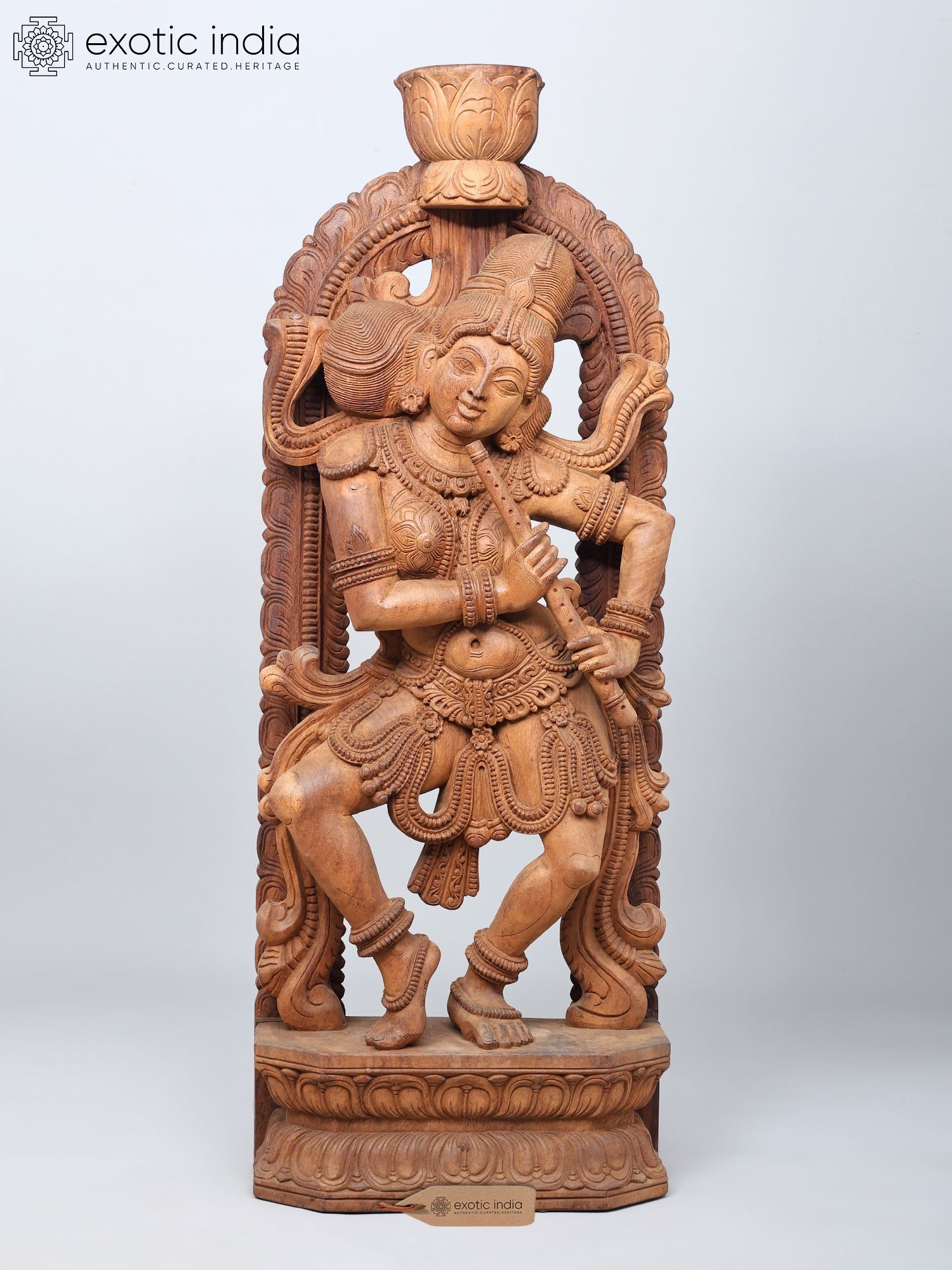 Madanika (Temple Dancer) with Flute in Tribhanga – South Indian Style Wooden Statue