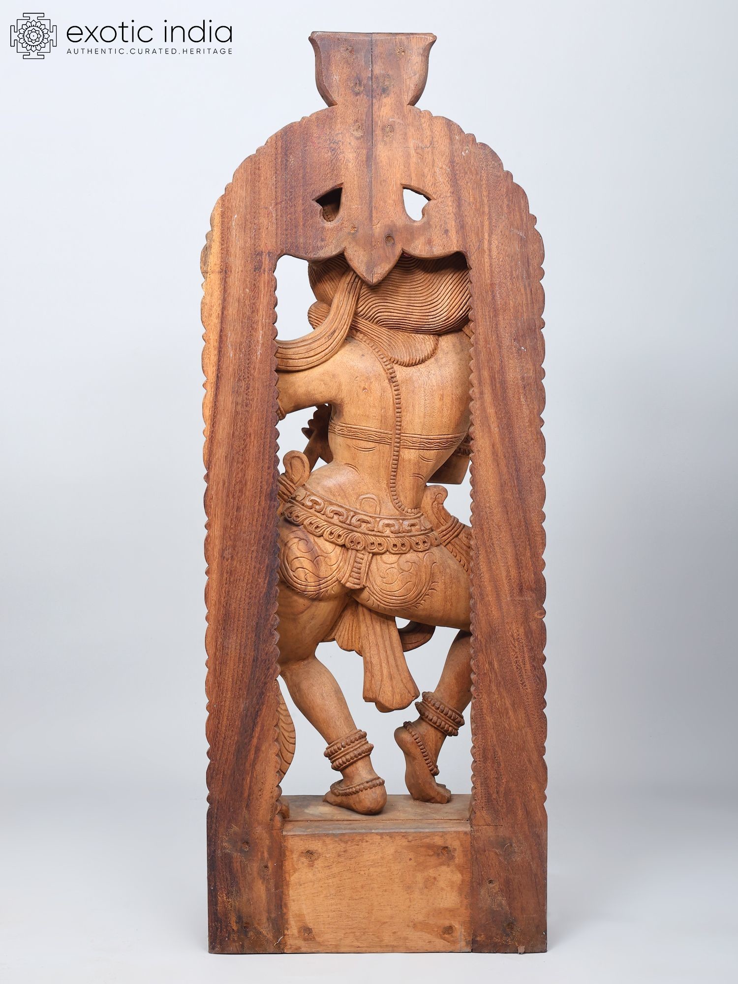 Features detailed South Indian-style wood carving showcasing intricate ornamentation.