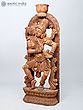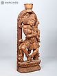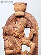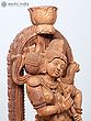 14" Nair Lady Carrying Puja Thali with Bananas | Wood Carved Statue