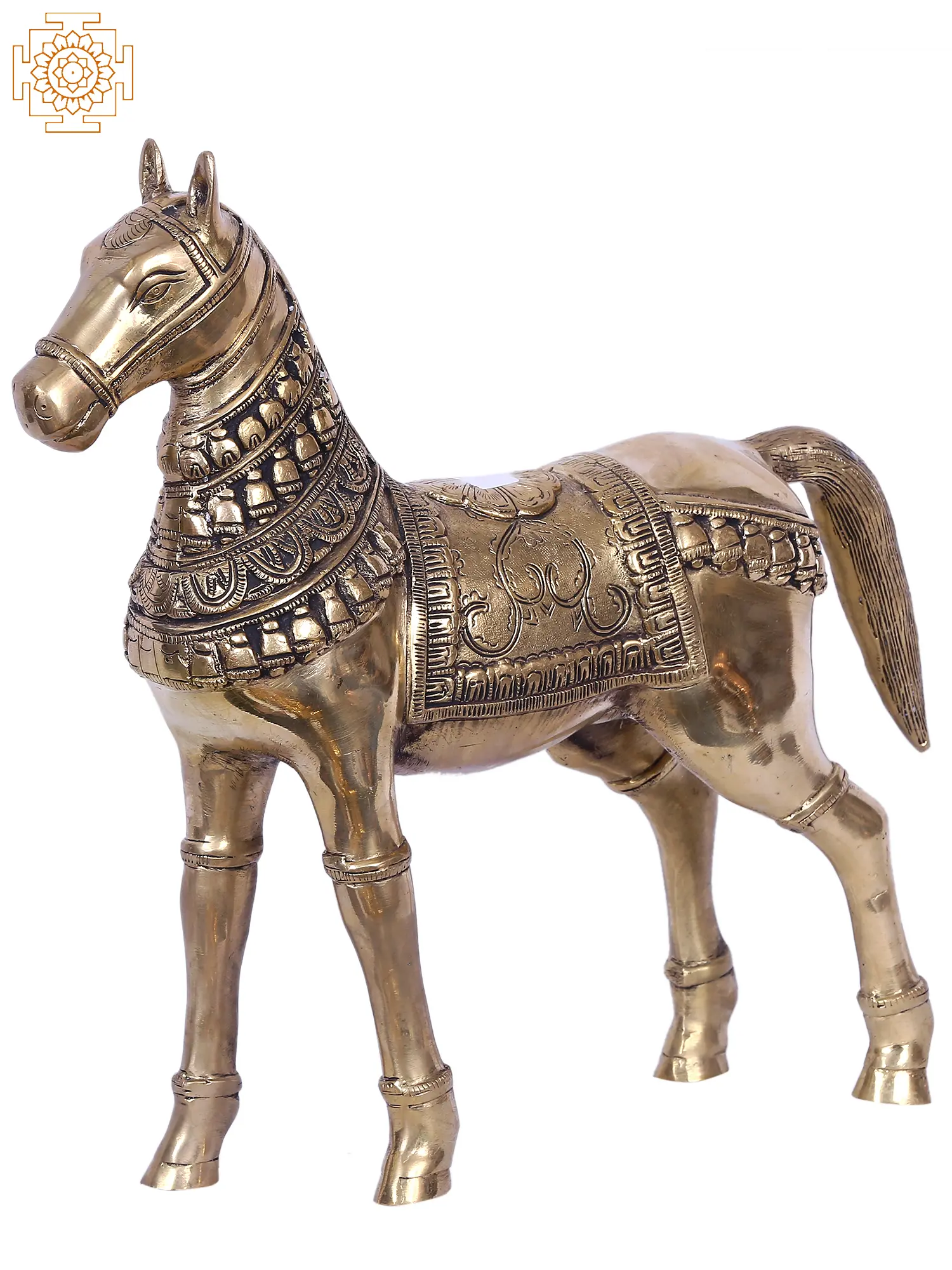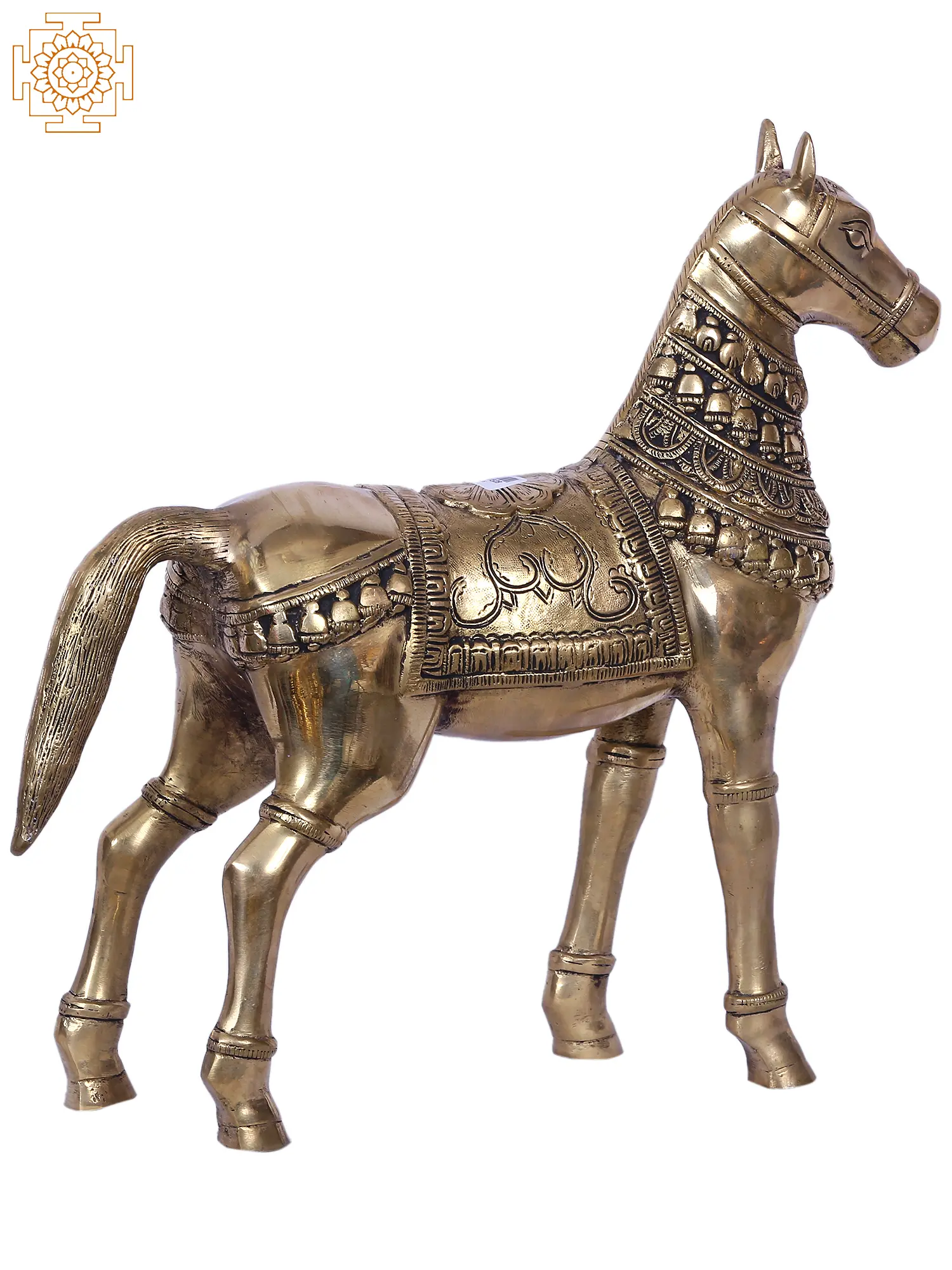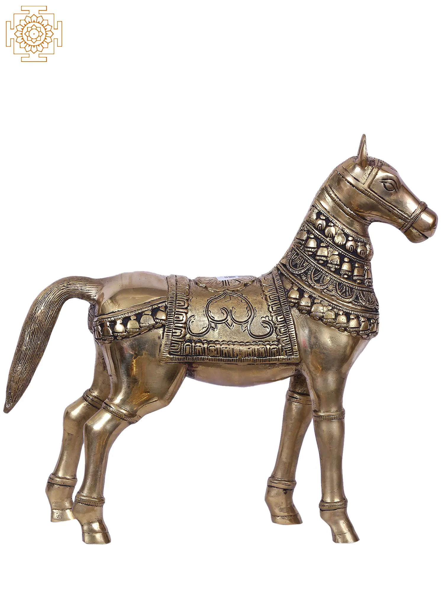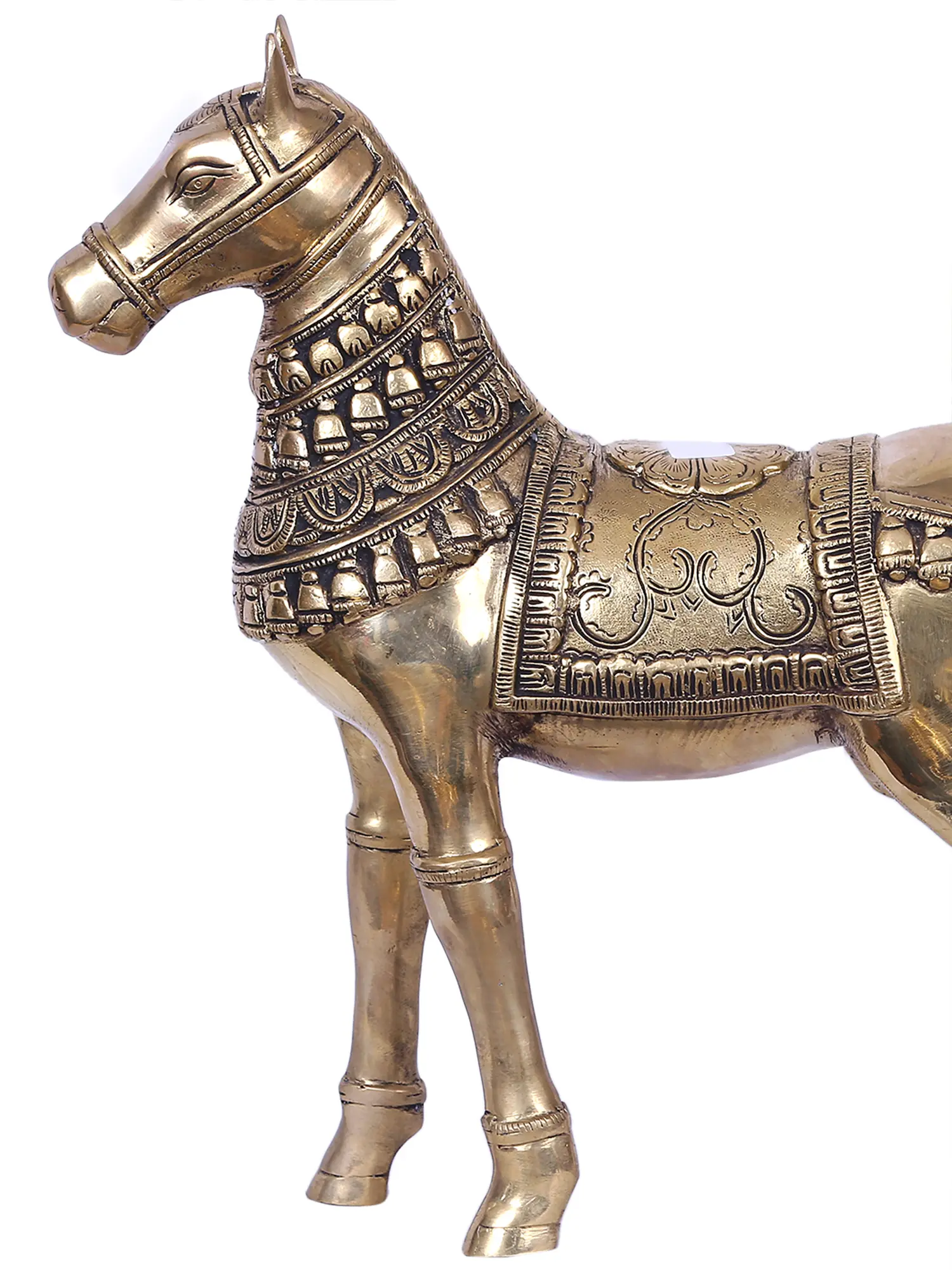This exquisite gold-plated brass horse figurine is more than just a decorative piece; it's a statement of timeless elegance and artistic skill. Meticulously crafted with intricate detailing, this figurine captures the majestic spirit of the horse in a style that evokes ancient artistry. The rich, warm glow of the gold plating enhances the intricate carvings, bringing this magnificent creature to life. This piece will add a touch of sophistication and cultural richness to any space, whether it's your home, office, or a collector's display.