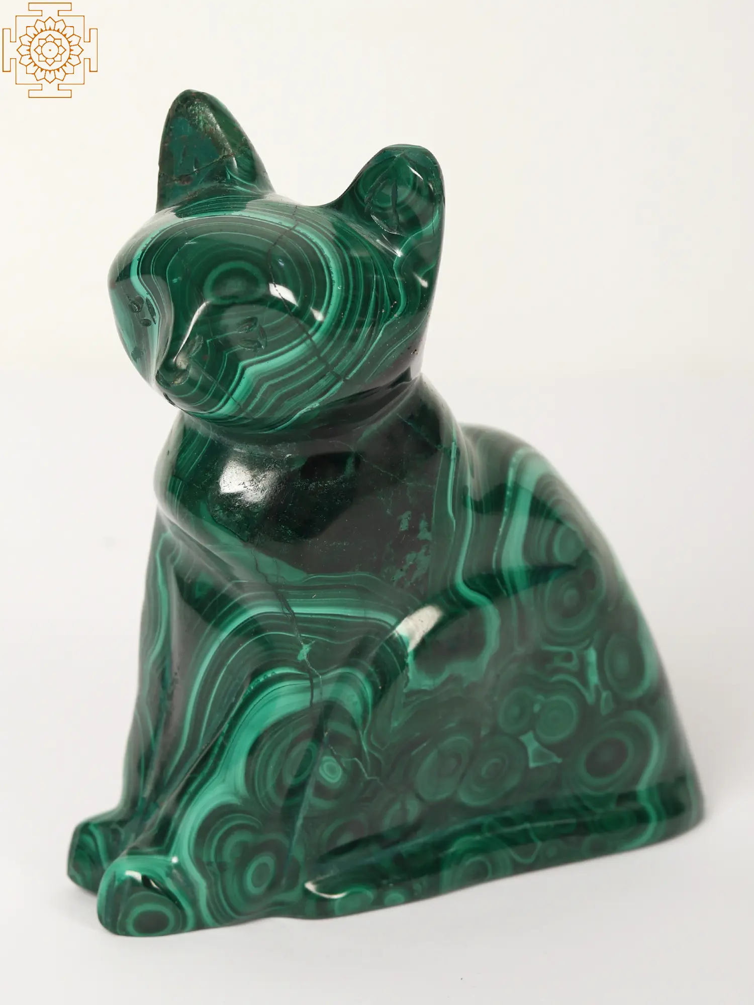This Malachite Cat Sculpture offers a unique blend of mystique and healing benefits. Cats, as enigmatic beings, bridge our world and the spirit realm. With the main structure of malachite, renowned for feminine healing, this sculpture aligns with the potent energy of the Heart Chakra, supporting female body systems and childbirth phases.