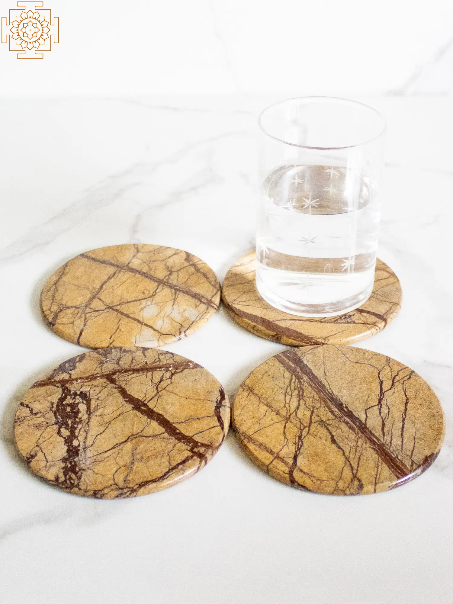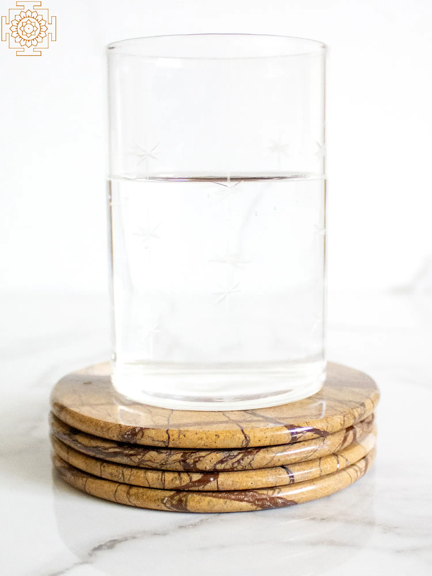 Coasters or cookies. The first appearance of these coaters makes them look like cookies; this is also a distinguishing trait. These coasters offer a touch of elegance to any tabletop and are made from the distinctive Bidasar Marble, which is recognized for its mesmerizing patterns and rich color variations.