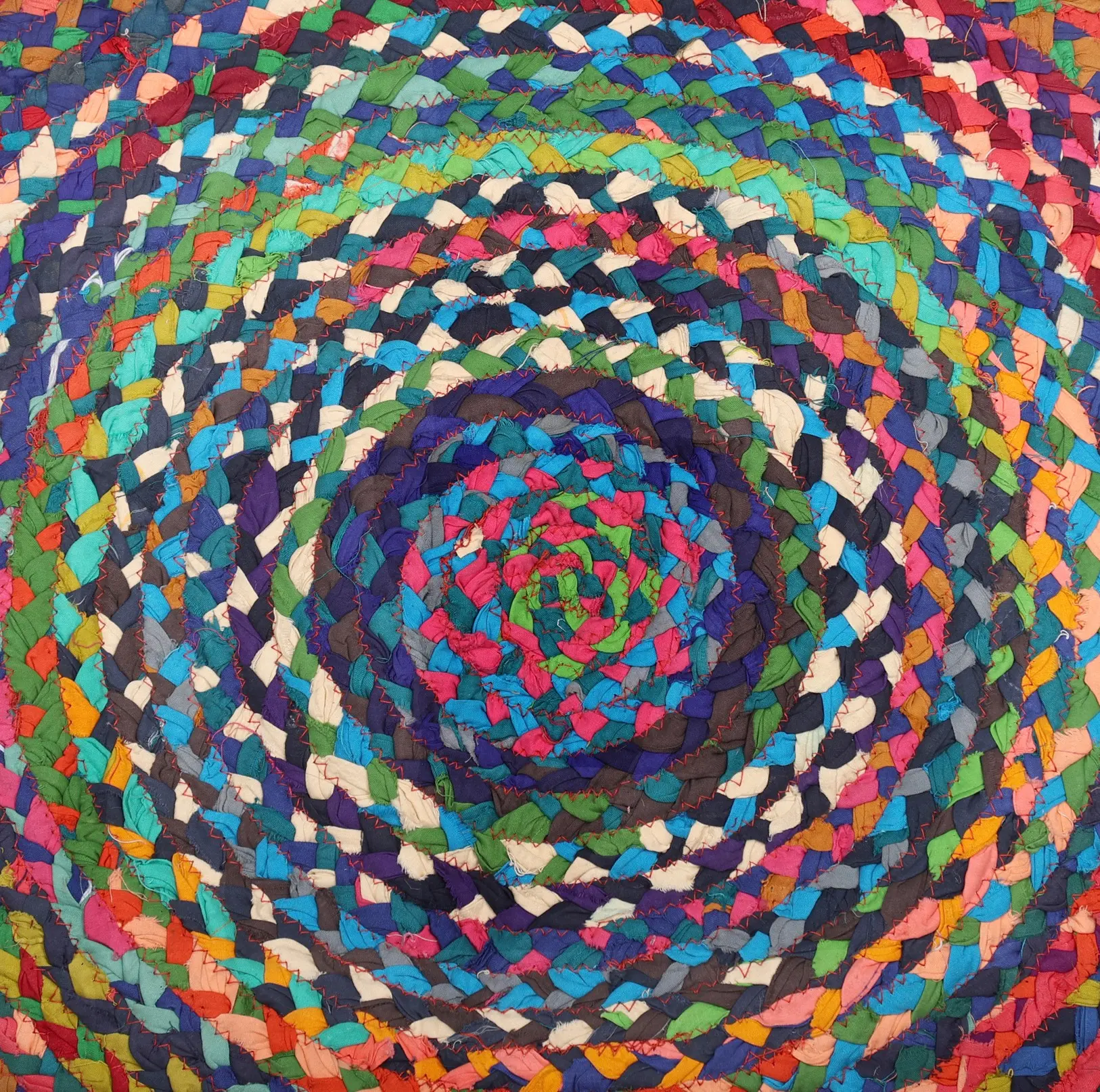 Infuse your living space with a vibrant, eclectic charm with this uniquely crafted circular mat. Each piece is a testament to the art of upcycling, transforming repurposed cotton remnants into a stunning and sustainable creation. The intricate braiding technique showcases the skill and dedication of the artisans who meticulously weave together a tapestry of colors, resulting in a truly one-of-a-kind accent for your home. The eye-catching color palette incorporates a wide range of hues, from deep reds and earthy browns to vibrant greens and calming blues, making it a versatile addition that complements various decor styles.
