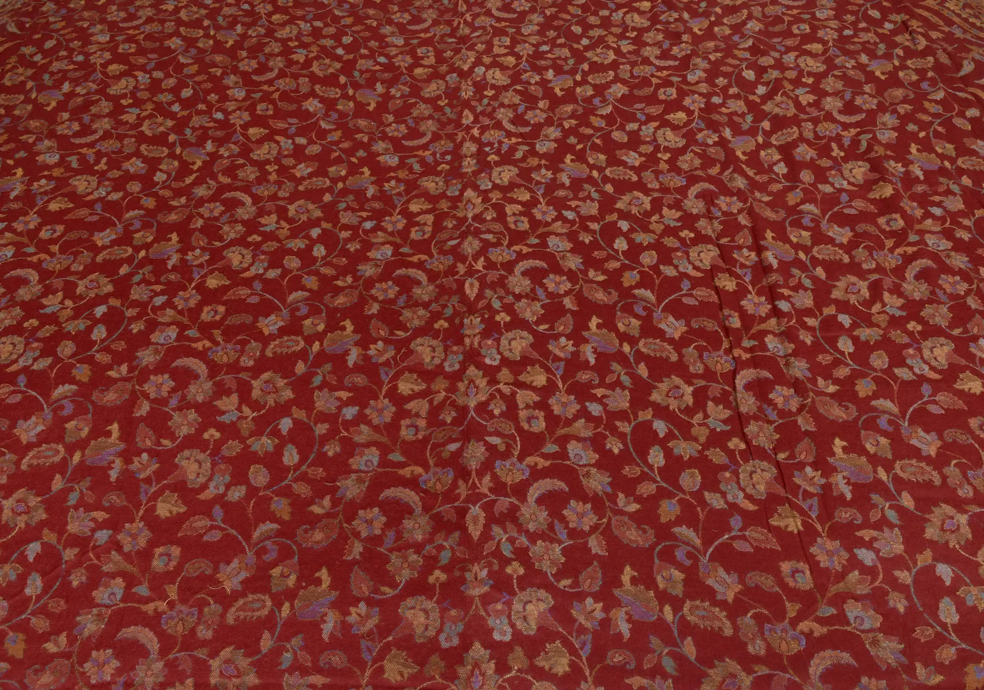 Maroon Jamawar Bedspread with Floral Kani Weave
