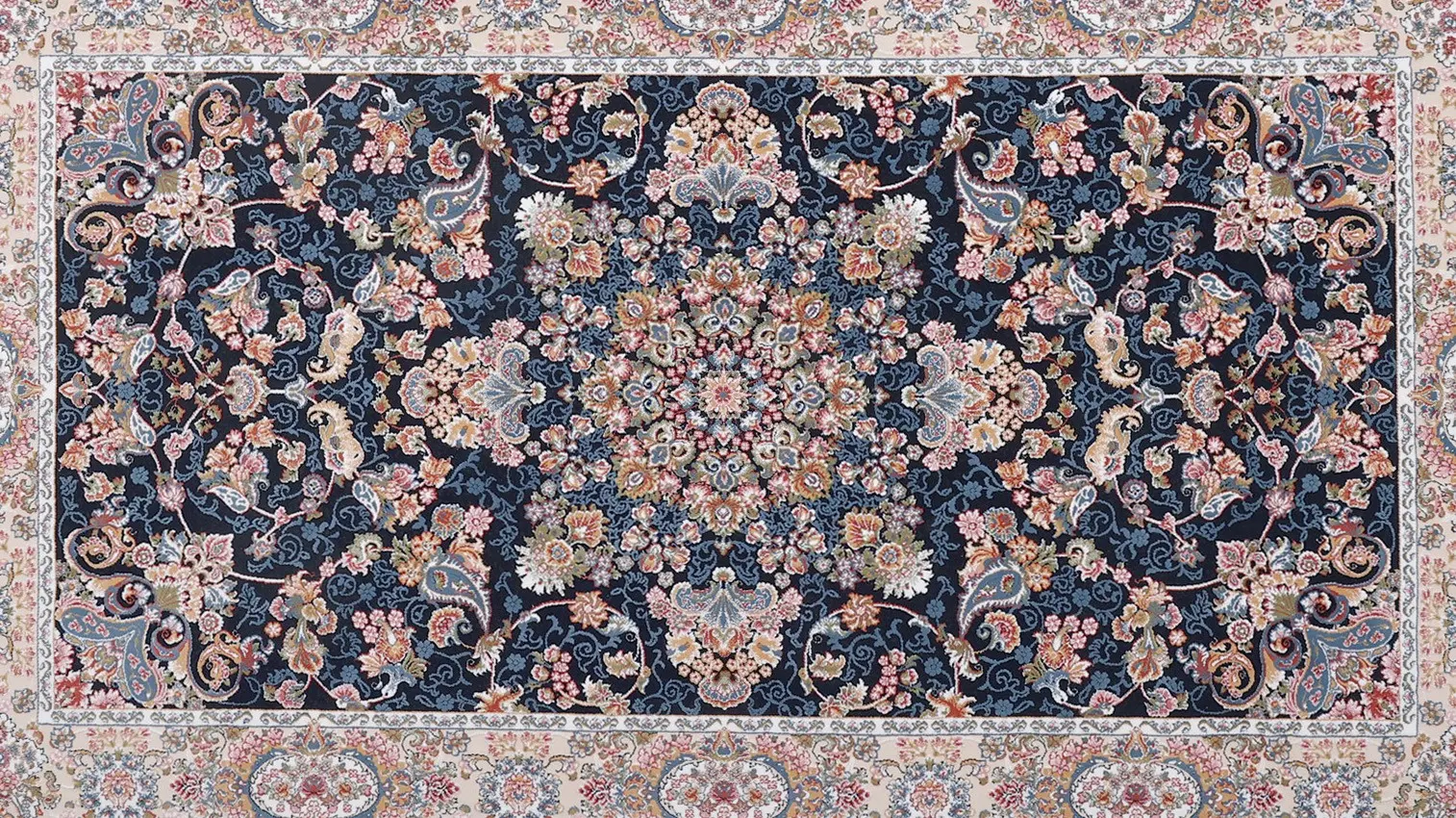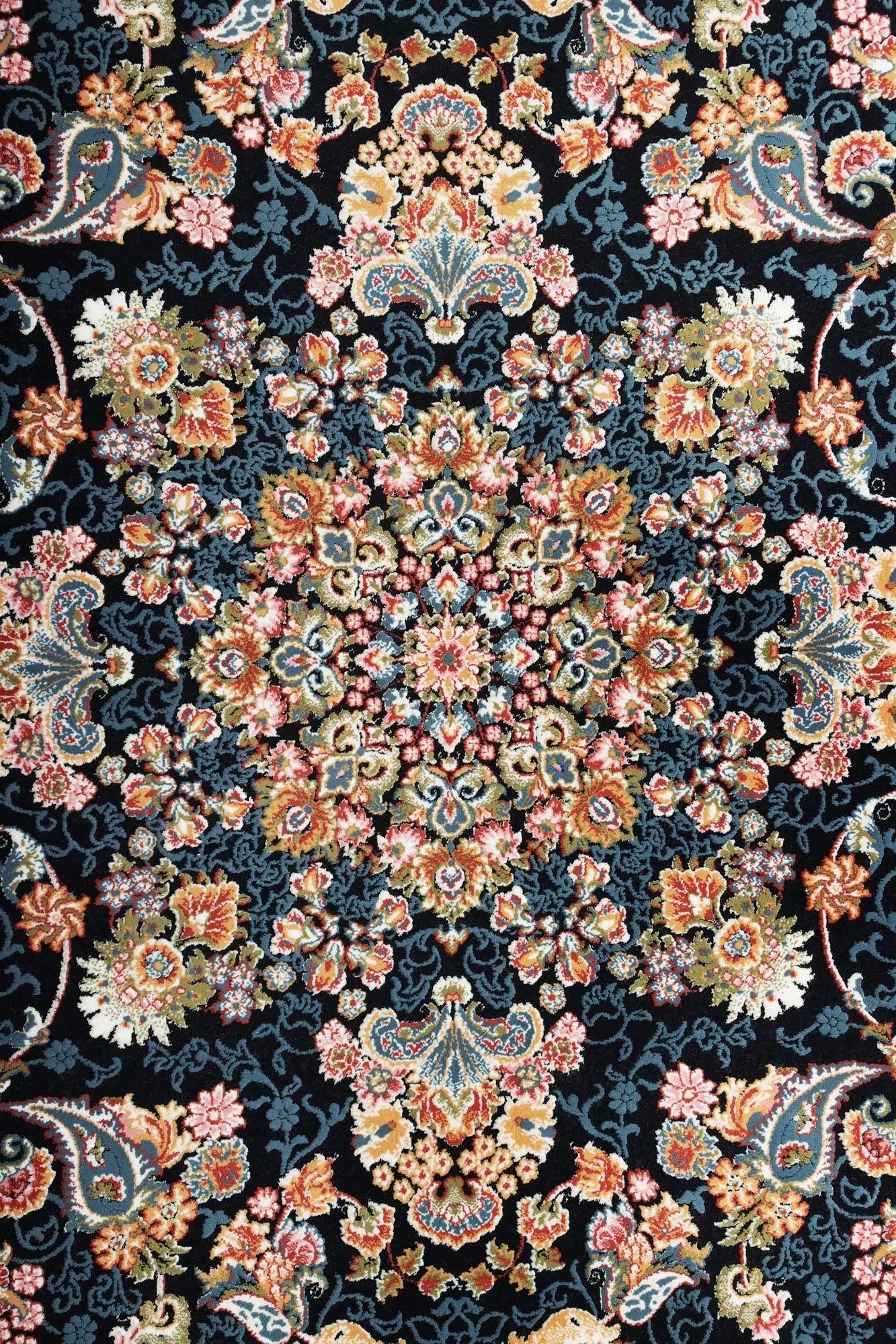 Midnight Handloom Carpet from Bhadohi with Floral Motifs