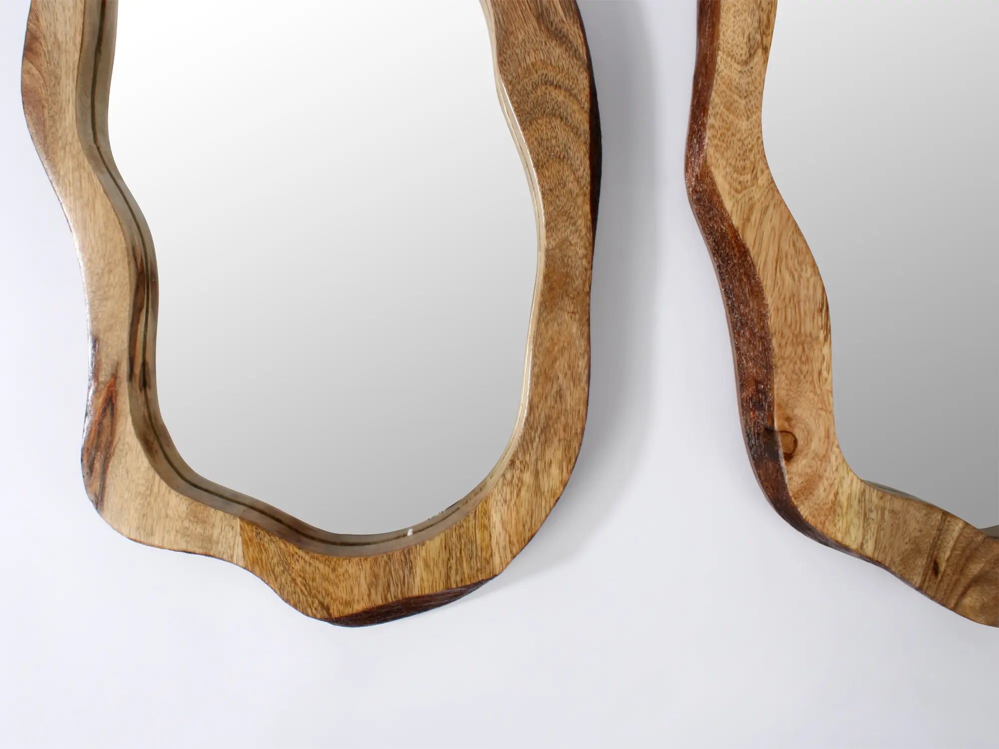 These aren't just functional mirrors; they are beautiful statement pieces that add a touch of nature-inspired elegance to your home. The organic shapes, the warm wood tones, and the high-quality craftsmanship create a truly unique and eye-catching addition to any interior. Transform your living space from ordinary to extraordinary with this stunning set of mirrors. They’re the perfect blend of artistry and functionality, ensuring that your space is both beautiful and well-lit.