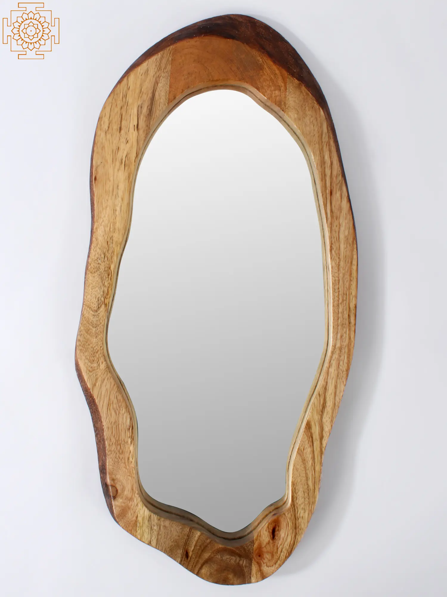 Elevate your home décor with this exquisite set of two wall-hanging mirrors. Crafted from rich, natural wood, these mirrors boast a unique, organic stone-shaped frame that adds a touch of rustic charm and modern sophistication to any space. The uneven, free-flowing lines of the frames create a visually captivating focal point, lending an artistic touch to your walls. Perfect for adding personality and a touch of nature-inspired style to living rooms, bedrooms, hallways, or even entryways. These versatile mirrors are sure to become a cherished part of your interior design.