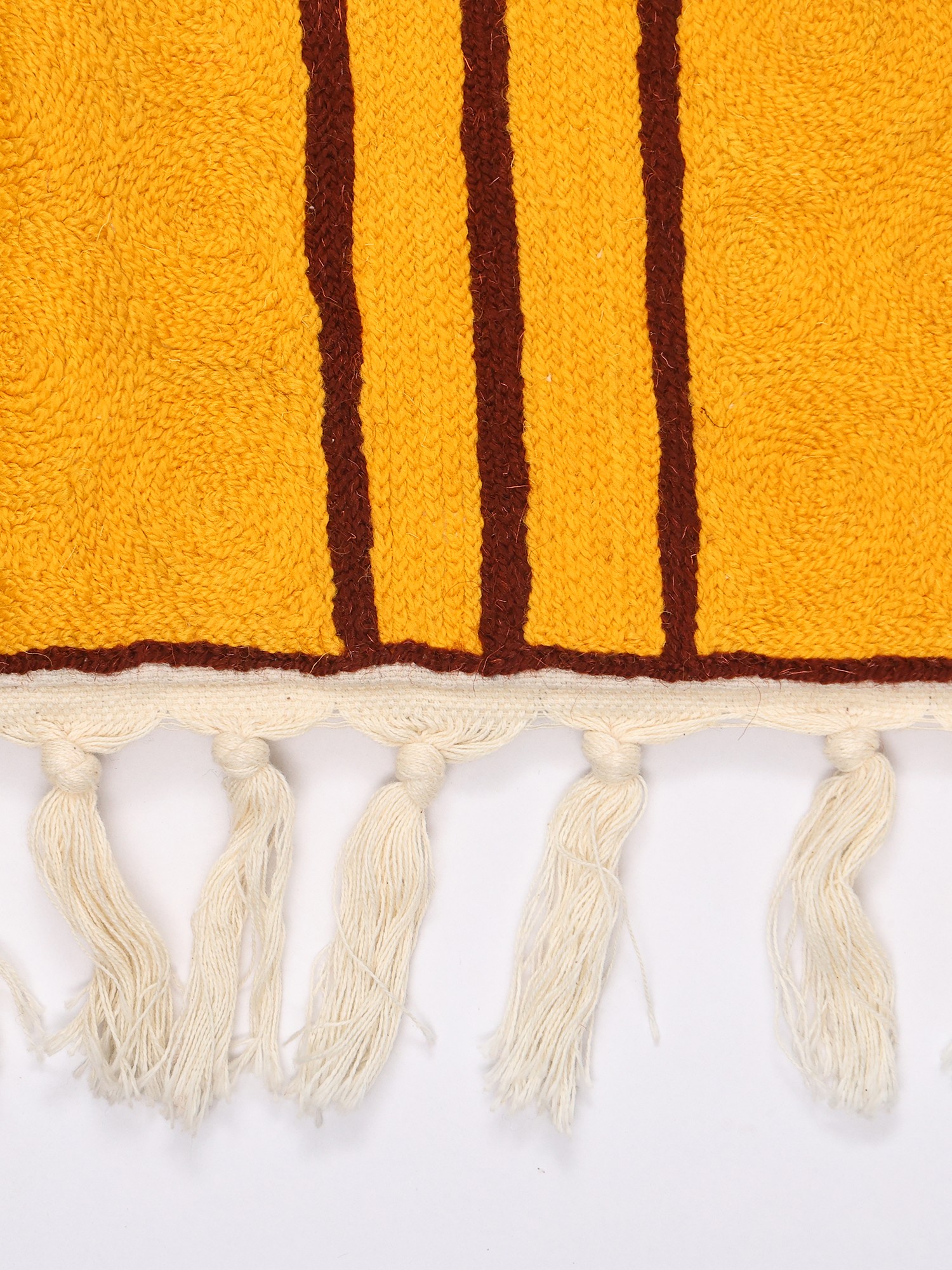 Tri-Color Chain Stitched Floral Carpet from Kashmir with Tassels