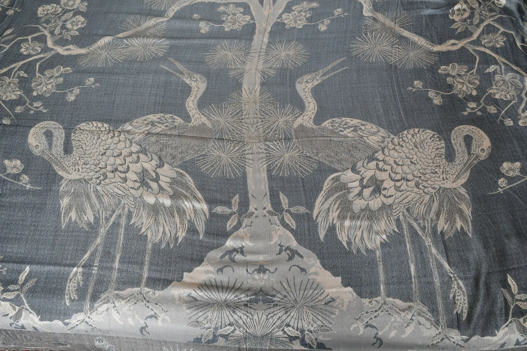 Banana-Crepe Pure Tussar Kantha Bed Cover From Bengal With Multicolor Fine Mango-Floral Motif Embroidery That Takes An Year To Complete