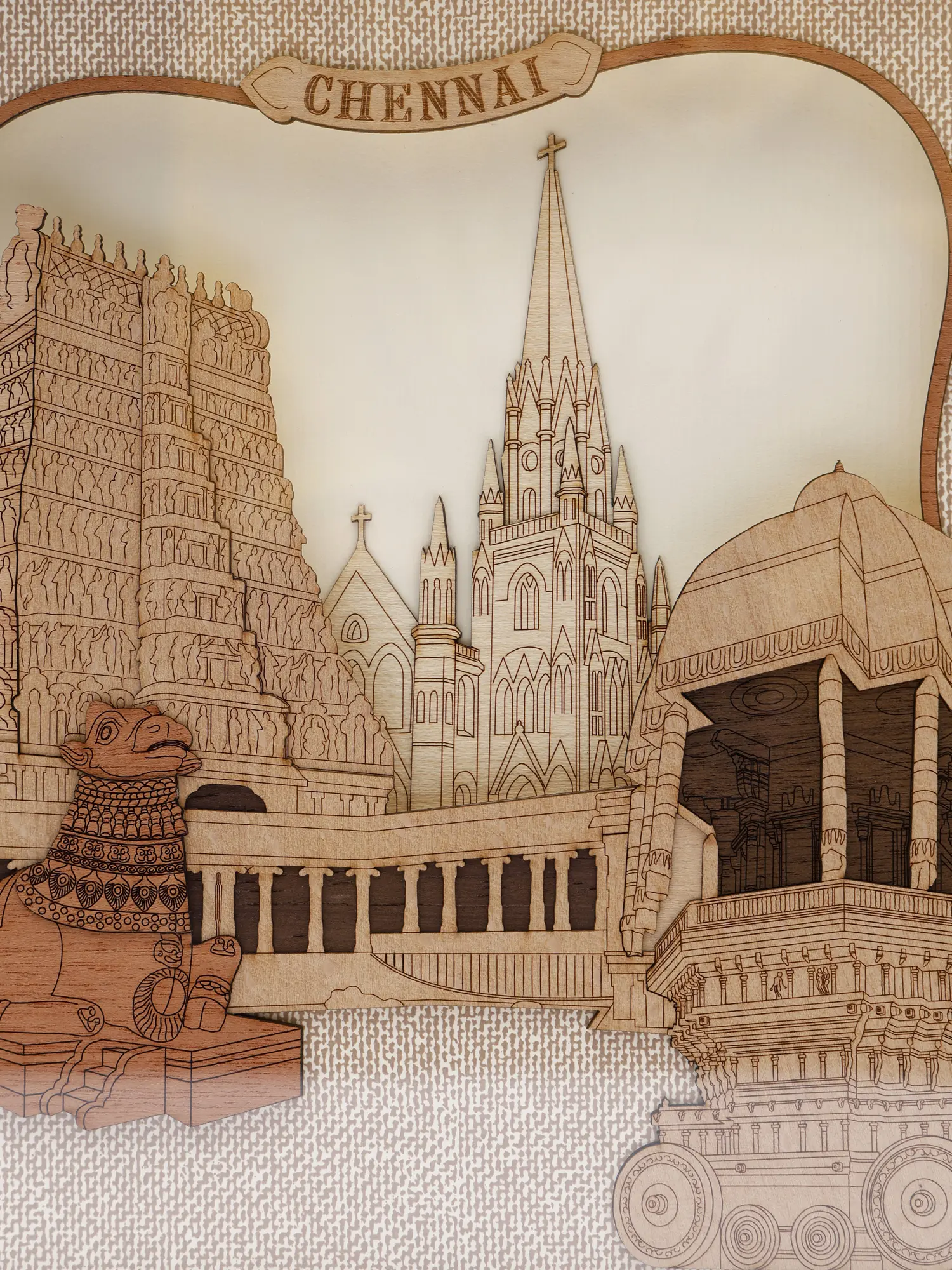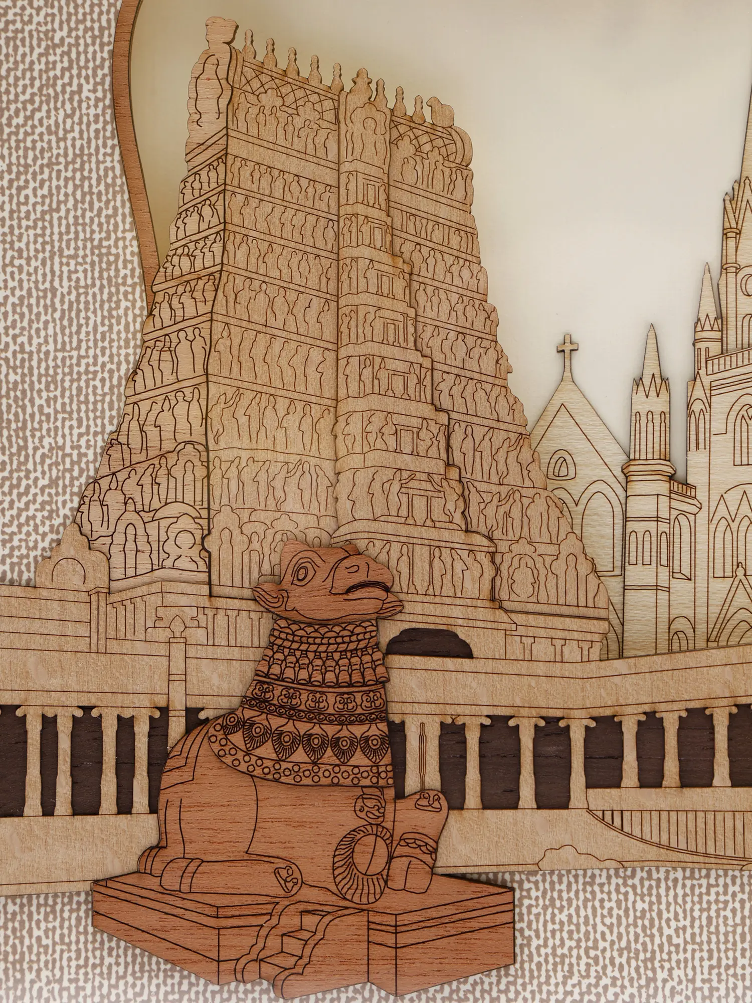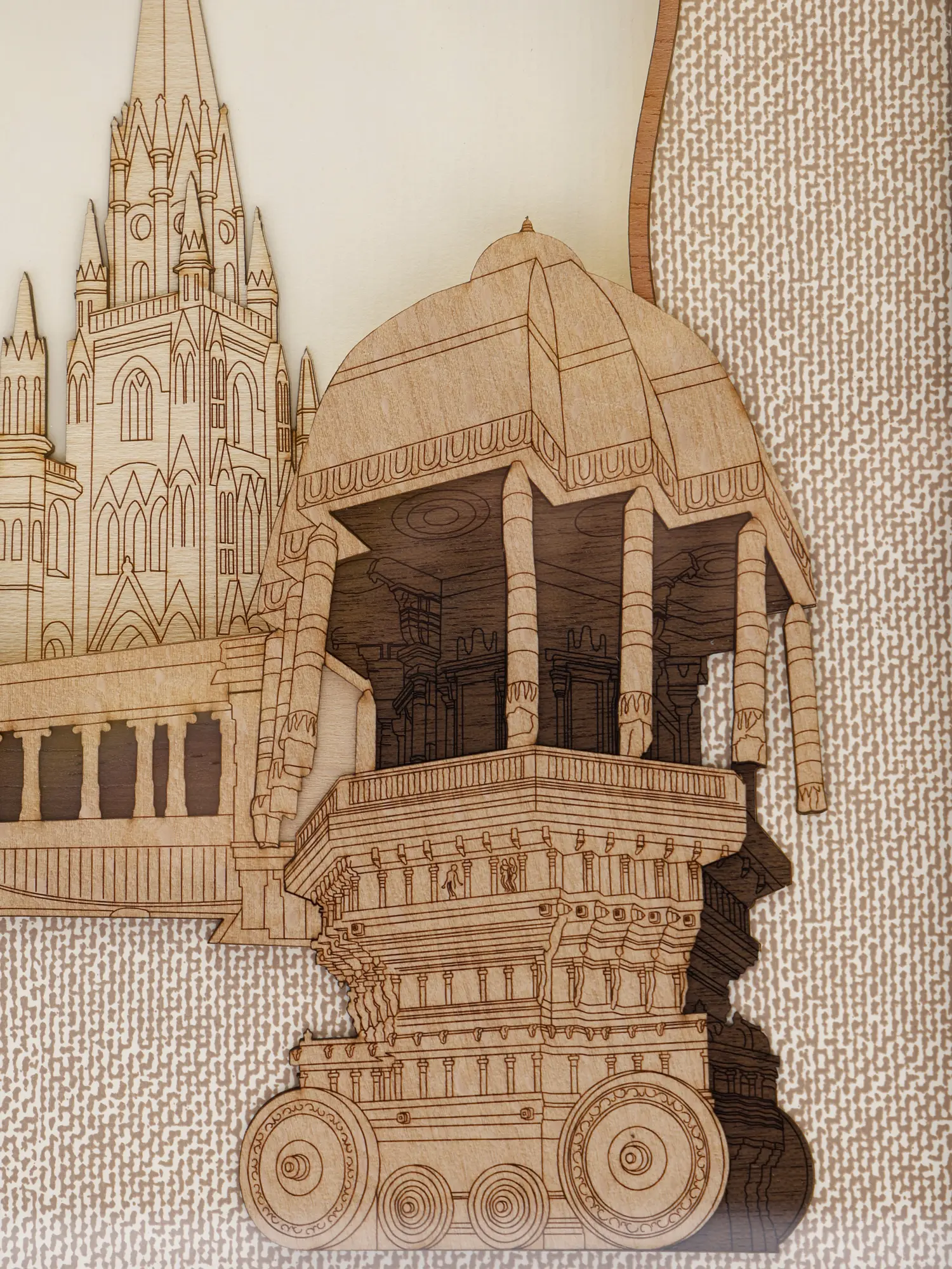 Monuments of Chennai | Wood Carved Frame | Wall Hanging