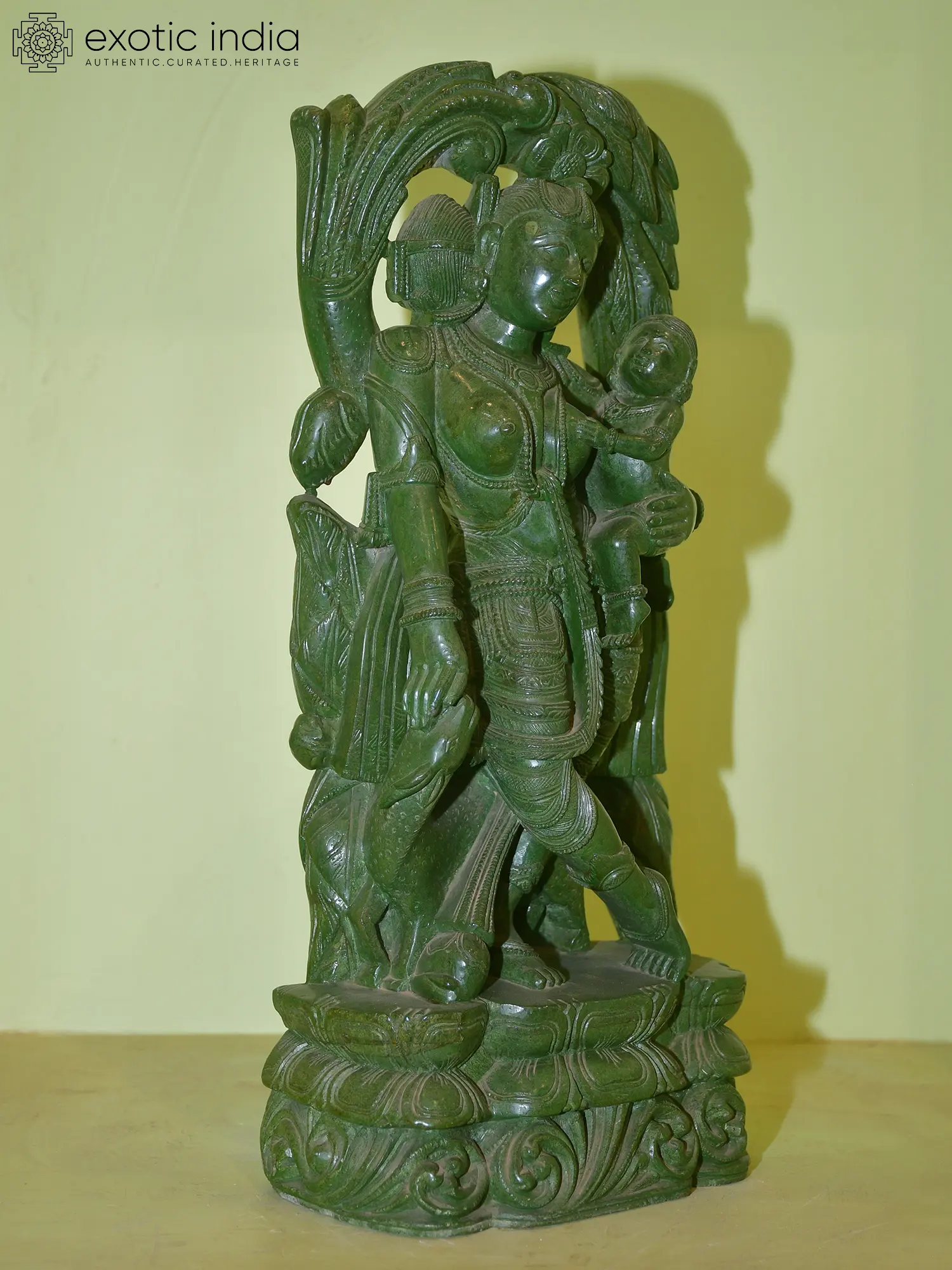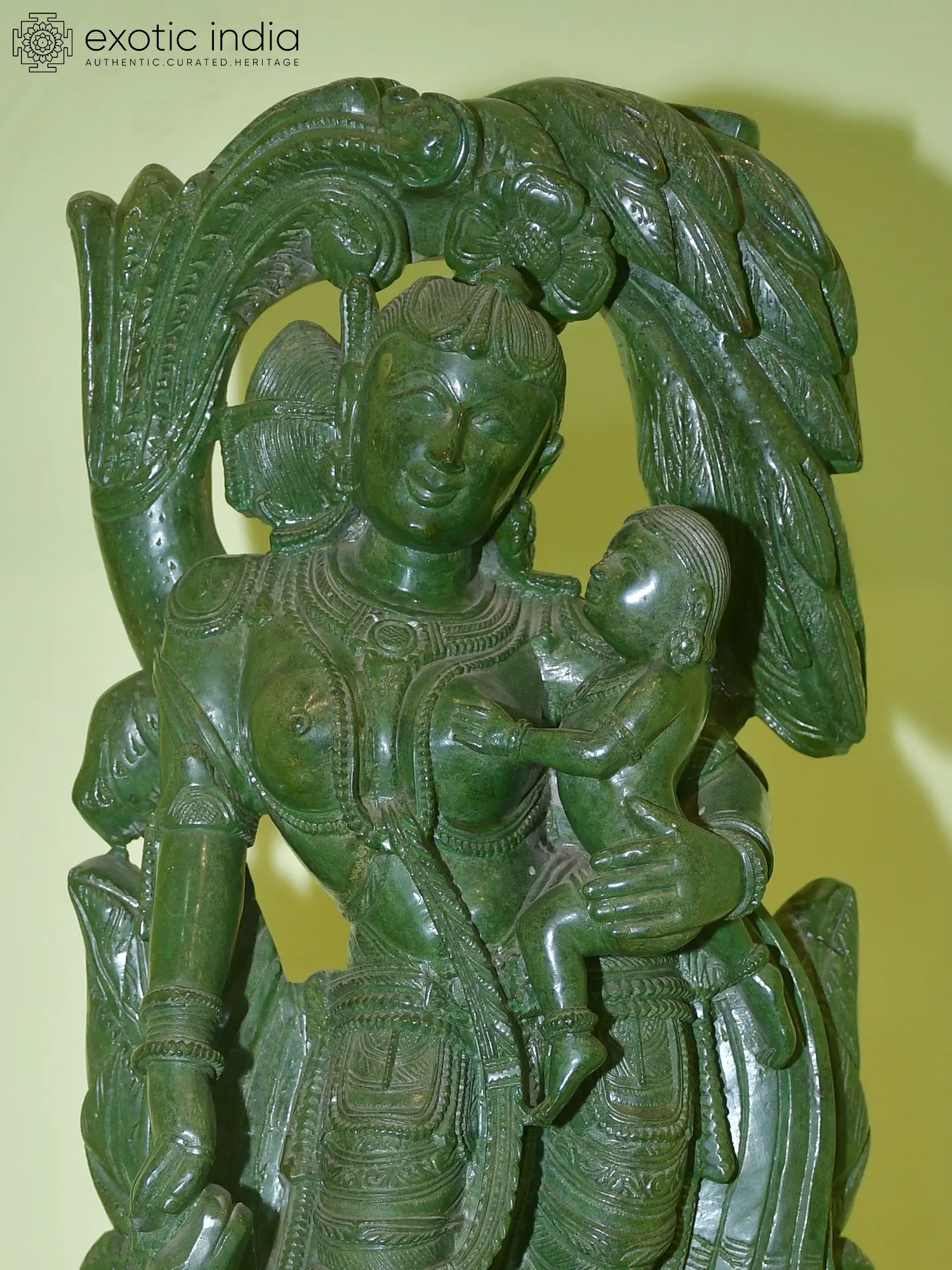 Carved from a richly green stone, this sculpture carries the quiet luminosity of earth and the eternal fertility it symbolizes.