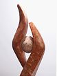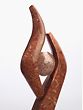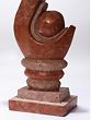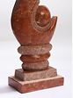 Carved in warm, earthy red marble, this sculpture holds two spherical elements: the mother and child, one grounded, one lifted, both united in a dance of nurture. The mother figure rises like a flame, her elongated limbs forming a cocoon of care, while the child rests in the sacred hollow of her presence.