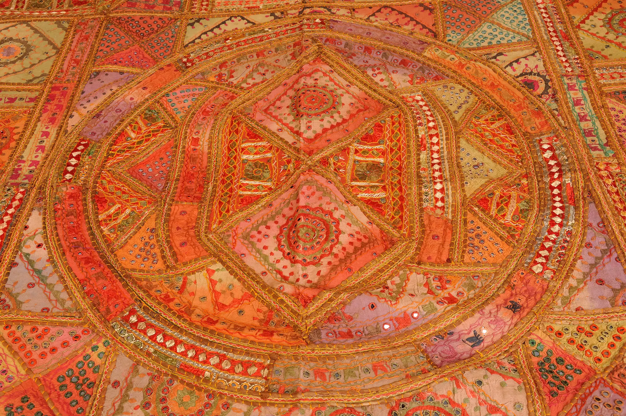 Bedcover from Jaipur with Embroidered Motifs and Mirrors