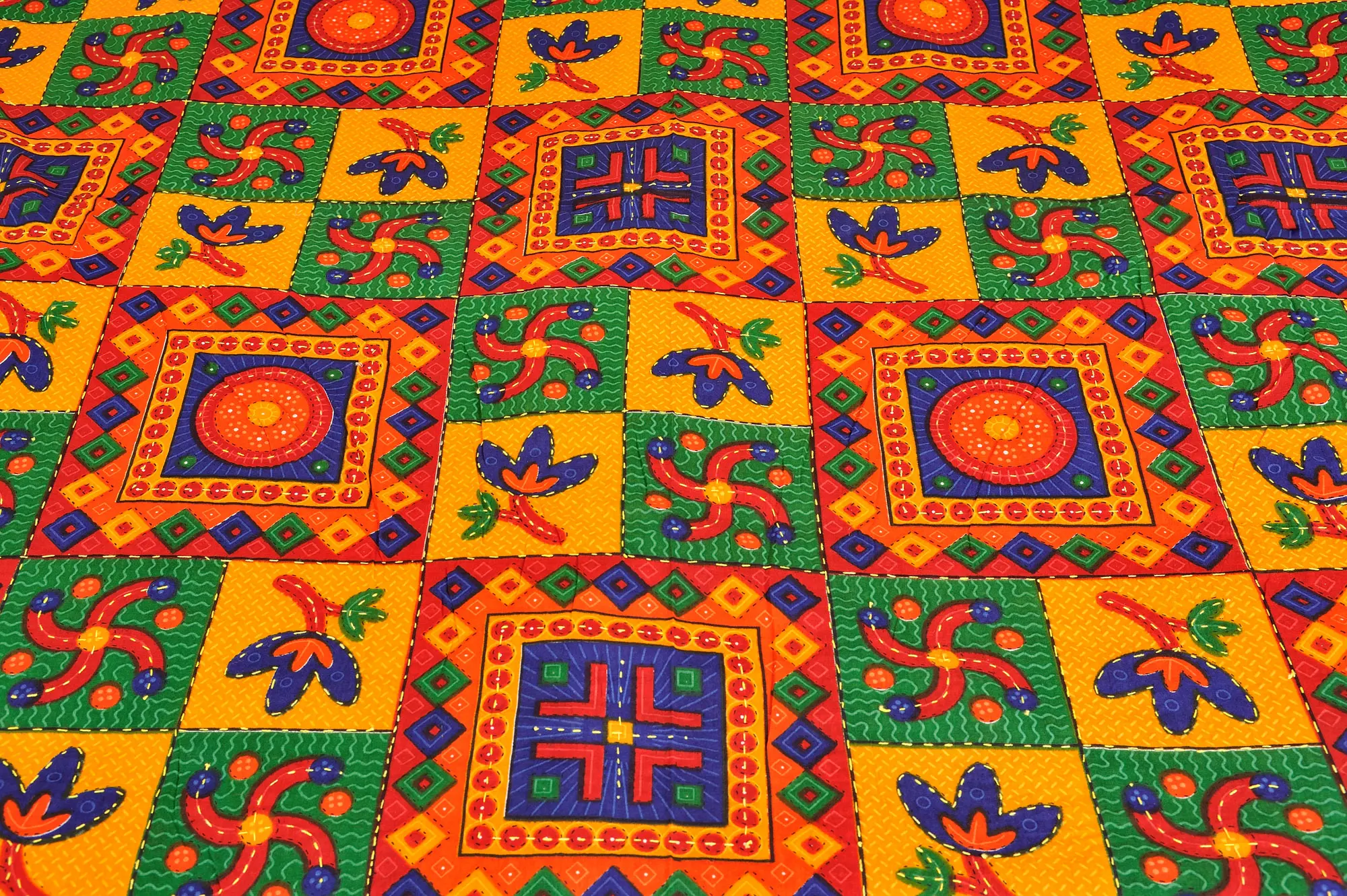 The bedspread boasts a vibrant palette, combining warm and cool tones to create a dynamic and eye-catching design. The interplay of colors creates a focal point in your bedroom, making it an inviting place to relax and unwind. Each color is carefully selected to complement the others, enhancing the overall aesthetic appeal of the bedspread.