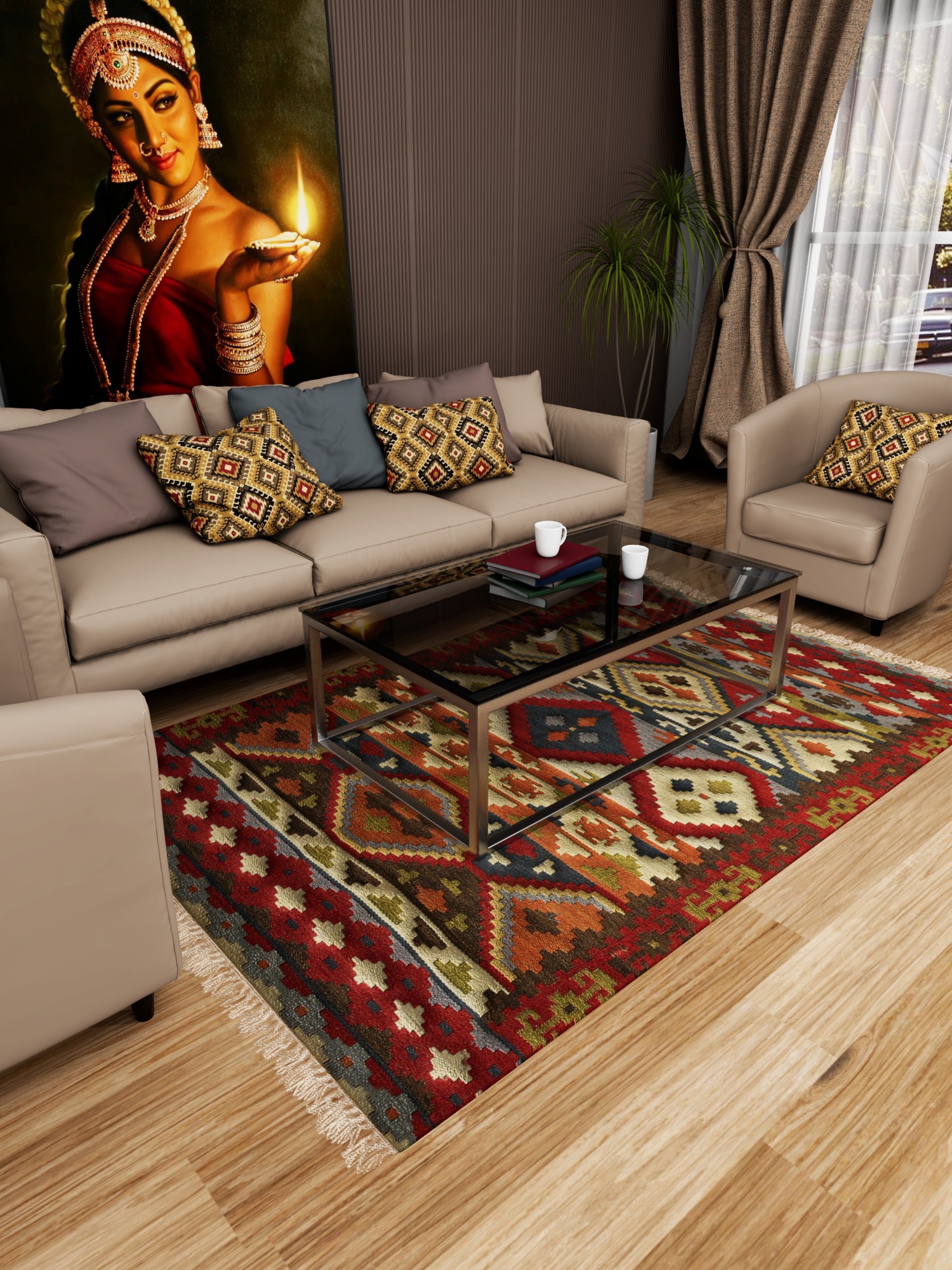 With dimensions of 72 inches by 46 inches, this durri provides the perfect balance of size and versatility. Its rectangular shape makes it suitable for a variety of spaces, from living rooms and bedrooms to hallways and entryways. Use it to define a seating area, add warmth to a bare floor, or create a focal point in your room. The size is also ideal for layering under larger furniture pieces, adding texture and visual interest to your existing decor.
