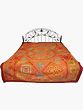 Envelop your bedroom in the vibrant spirit of Kutch with this exquisite bedspread. Handcrafted with meticulous detail, this piece is more than just bedding; it's a work of art, a cultural statement, and a conversation starter. Imagine the rich colors and intricate embroidery transforming your space into a haven of warmth and character. The artistry of Kutch, a region renowned for its textile traditions, shines through every stitch. Skilled artisans have poured their hearts and souls into creating this captivating piece. The design features a striking, oversized mandala at its center, radiating outwards with geometric patterns and floral motifs. This iconic design is a symbol of wholeness and spiritual connection, bringing a sense of peace and harmony to your sleep space.