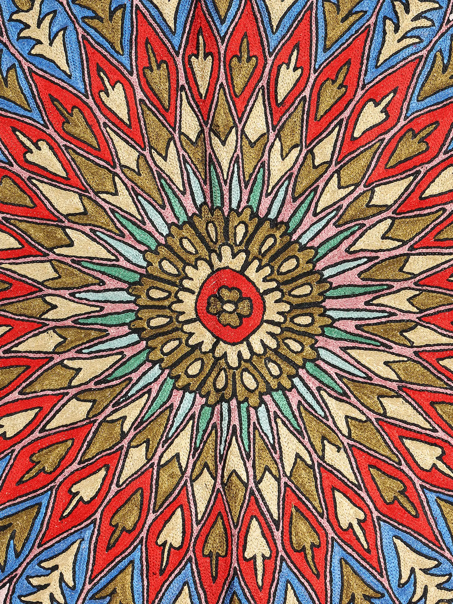 Multicolor Kashmiri Carpet with Chain Stitched Aari Embroidered Flowers