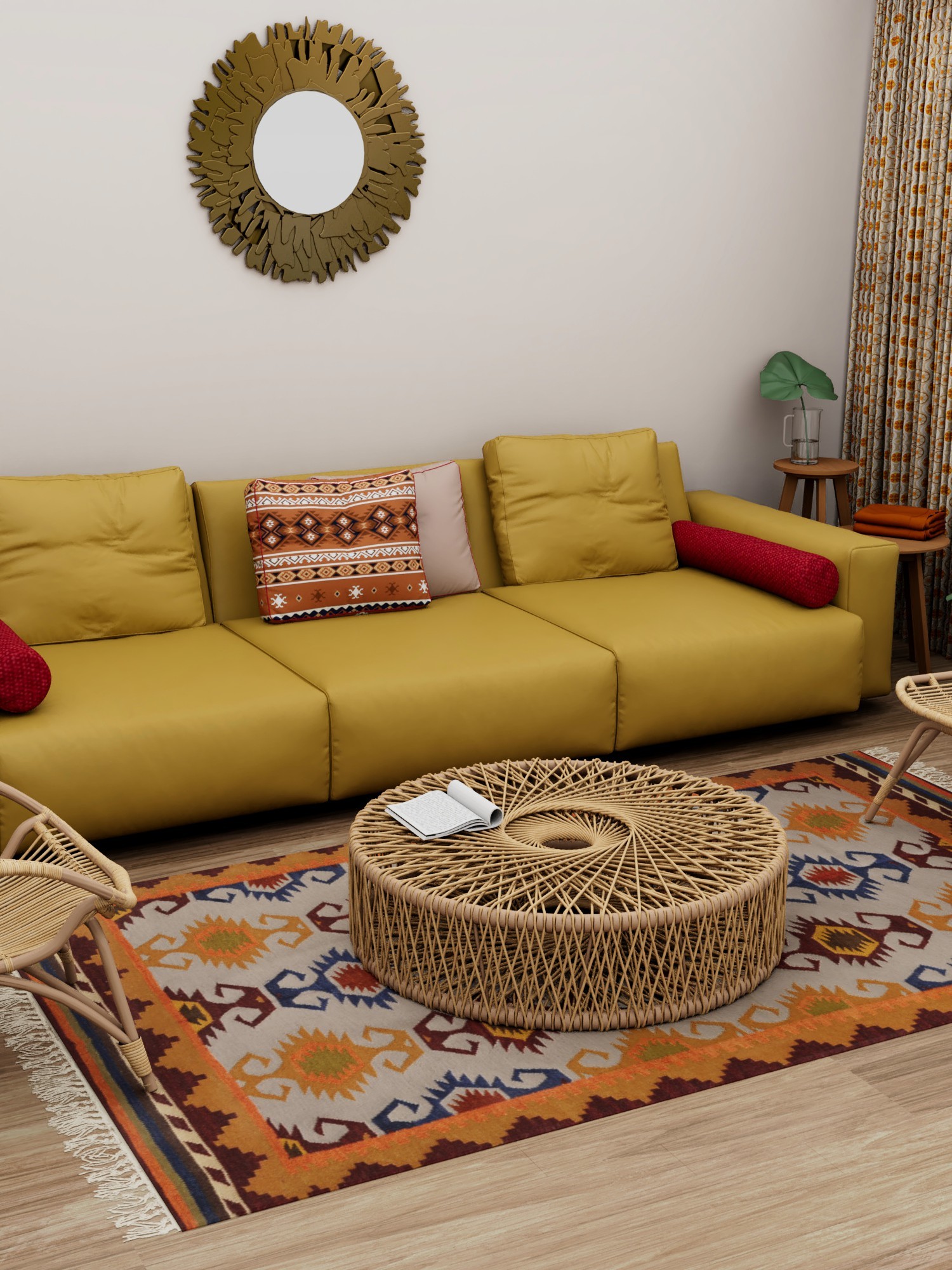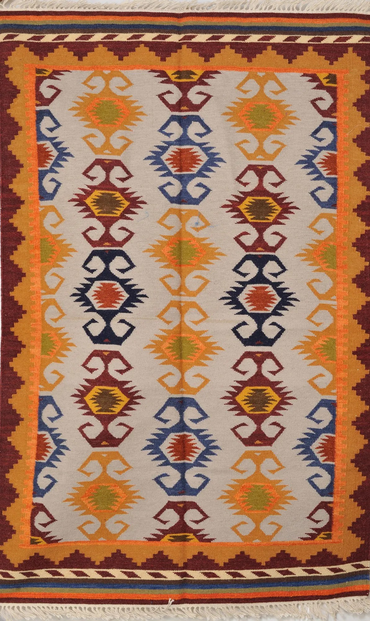 Now any protruding knots and extra threads are cut off using scissors and clippers. Now the craftsmen ensure that all four sides of the carpet and weaves are locked by stitches so that the carpet remains intact and strong.