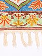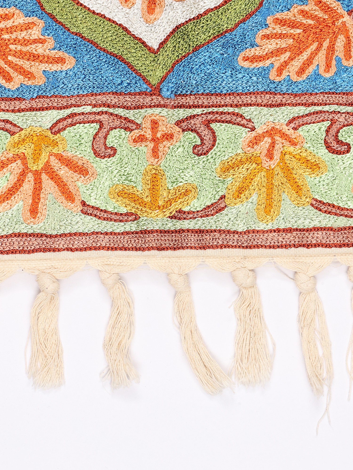Tri-Color Floral Chain Stitched Aari Embroidered Carpet with Tassels from Kashmir