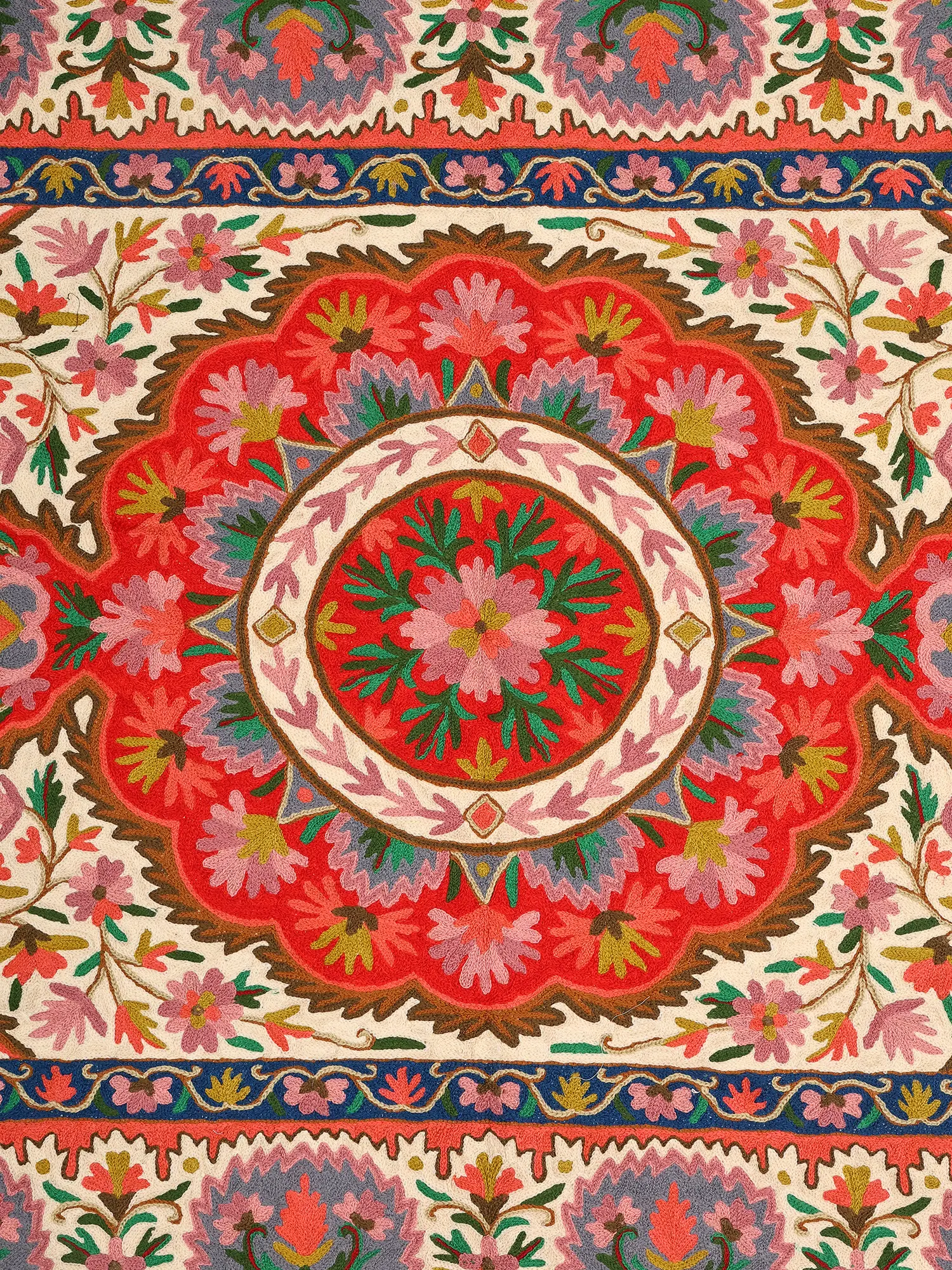 Persian Motifs Kashmiri Carpet with Chain Stitched Thread Embroidery