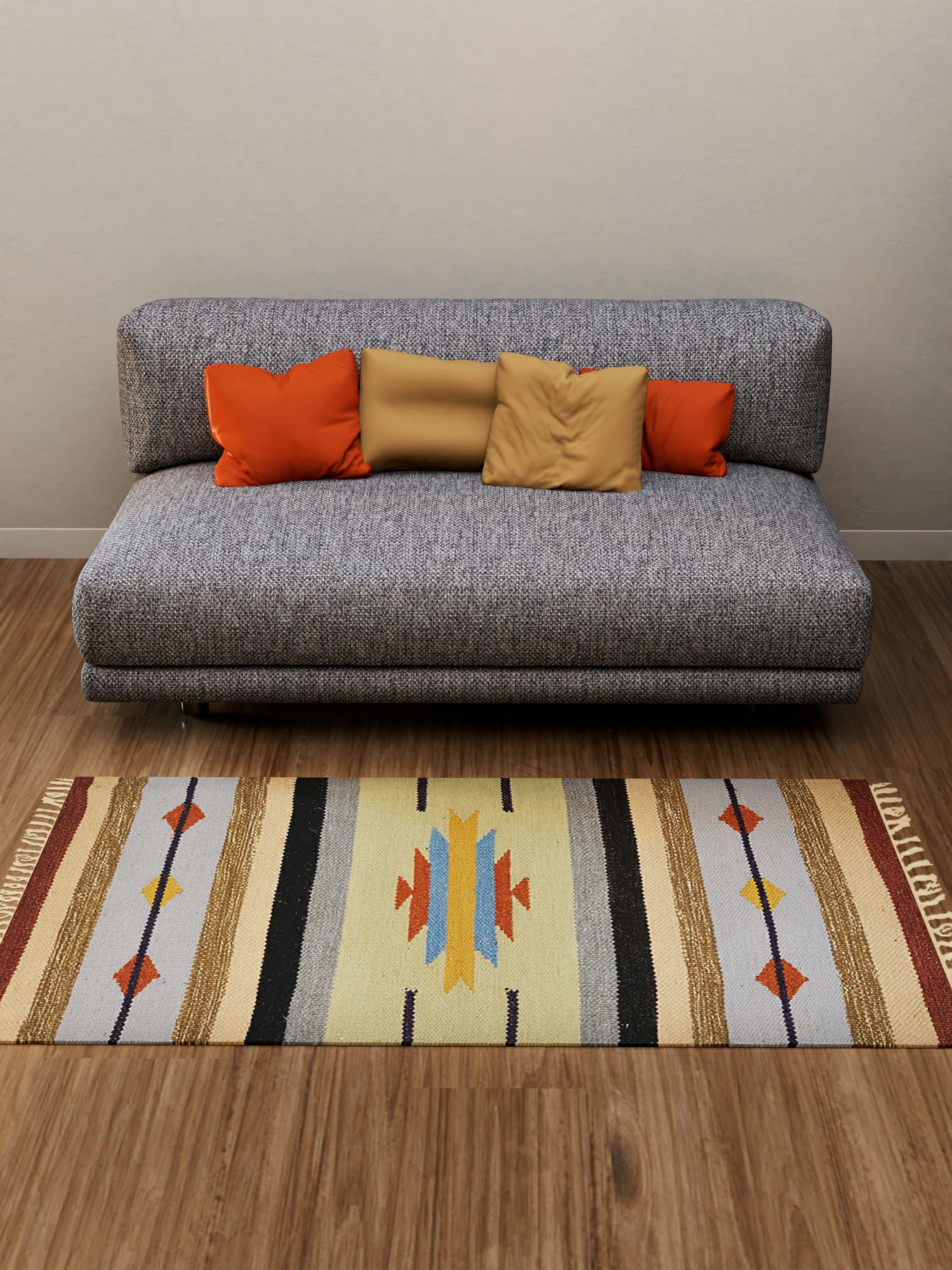 Choosing this Dhurrie means supporting sustainable practices and ethical production. Handloom weaving is an eco-friendly process that minimizes environmental impact, relying on traditional techniques and natural materials. By purchasing this item, you are contributing to the preservation of artisanal skills and providing fair wages to the weavers and their communities. This is a purchase you can feel good about, knowing that you are making a positive impact on both the environment and the lives of talented artisans.