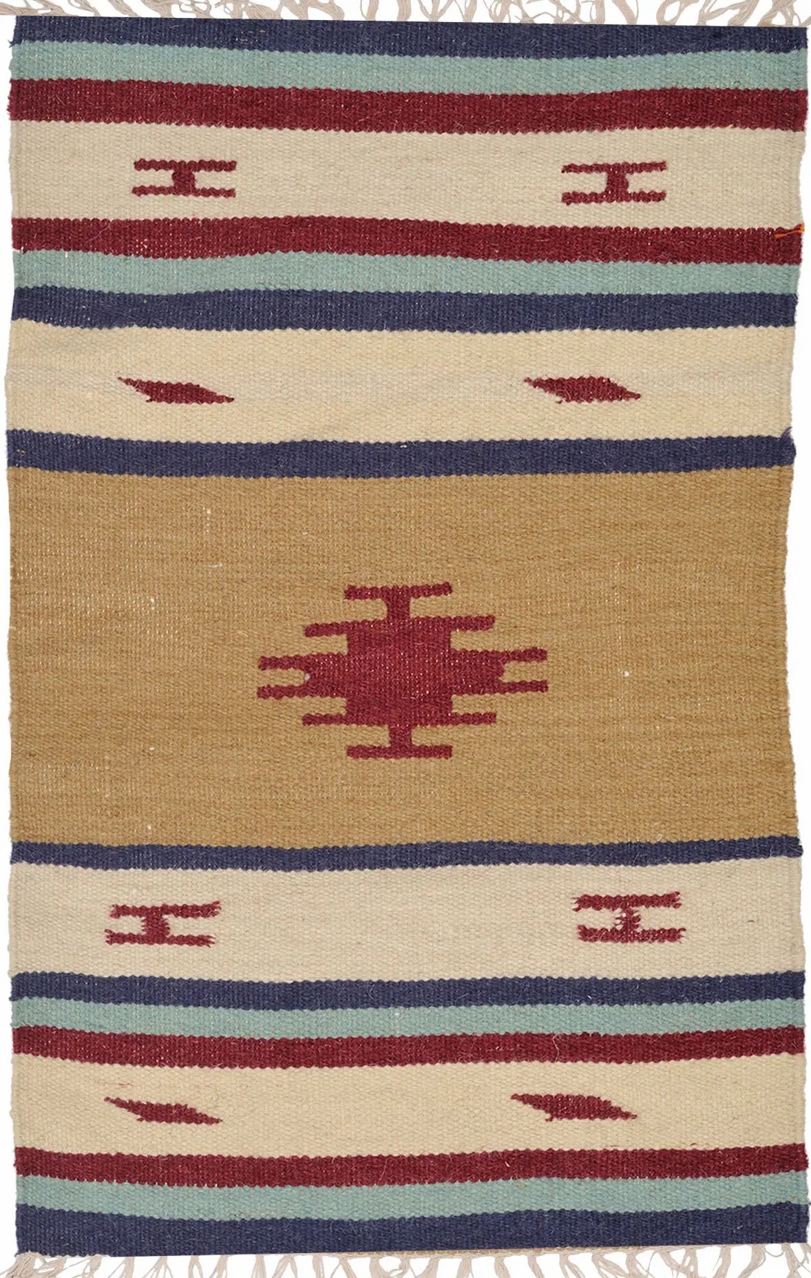This versatile dhurrie can be used in a variety of ways to enhance your living space. Place it in your living room as a stylish accent rug, adding warmth and texture to your seating area. Use it in your bedroom to create a cozy and inviting atmosphere. Its compact size also makes it ideal for smaller spaces such as hallways, entryways, or even as a wall hanging, adding a touch of global-inspired charm to any corner of your home.