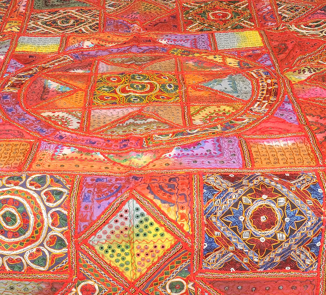 Multicolor Embroidered Bedspread from Kutch with Patchwork and Mirrors