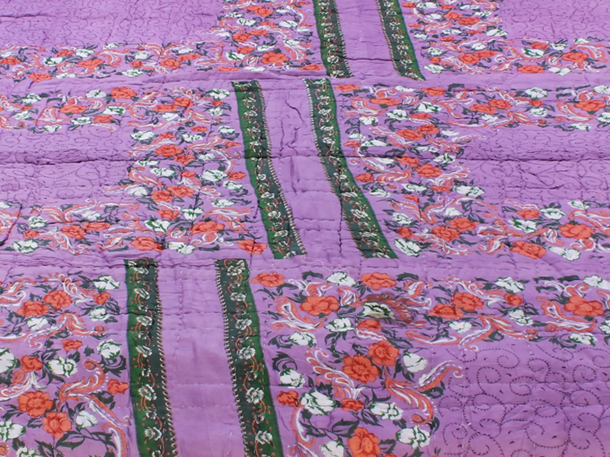 Relish the charm of this Kantha-style multicoloured patchwork reversible quilt from Jodhpur, which combines traditional and modern design elements. In this artwork, each stitch tells a story through “Kantha Patchwork”—a cherished Bengali tradition embodying history, culture, and artistry.