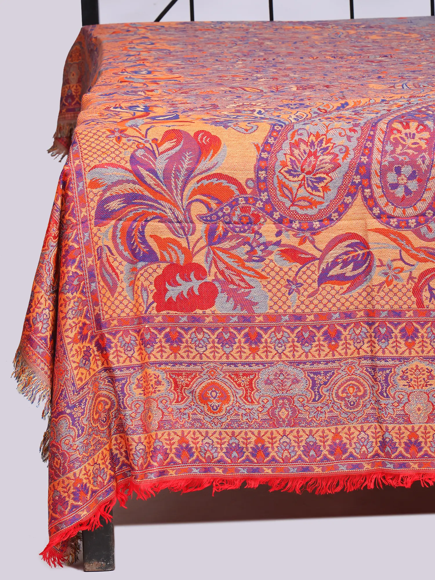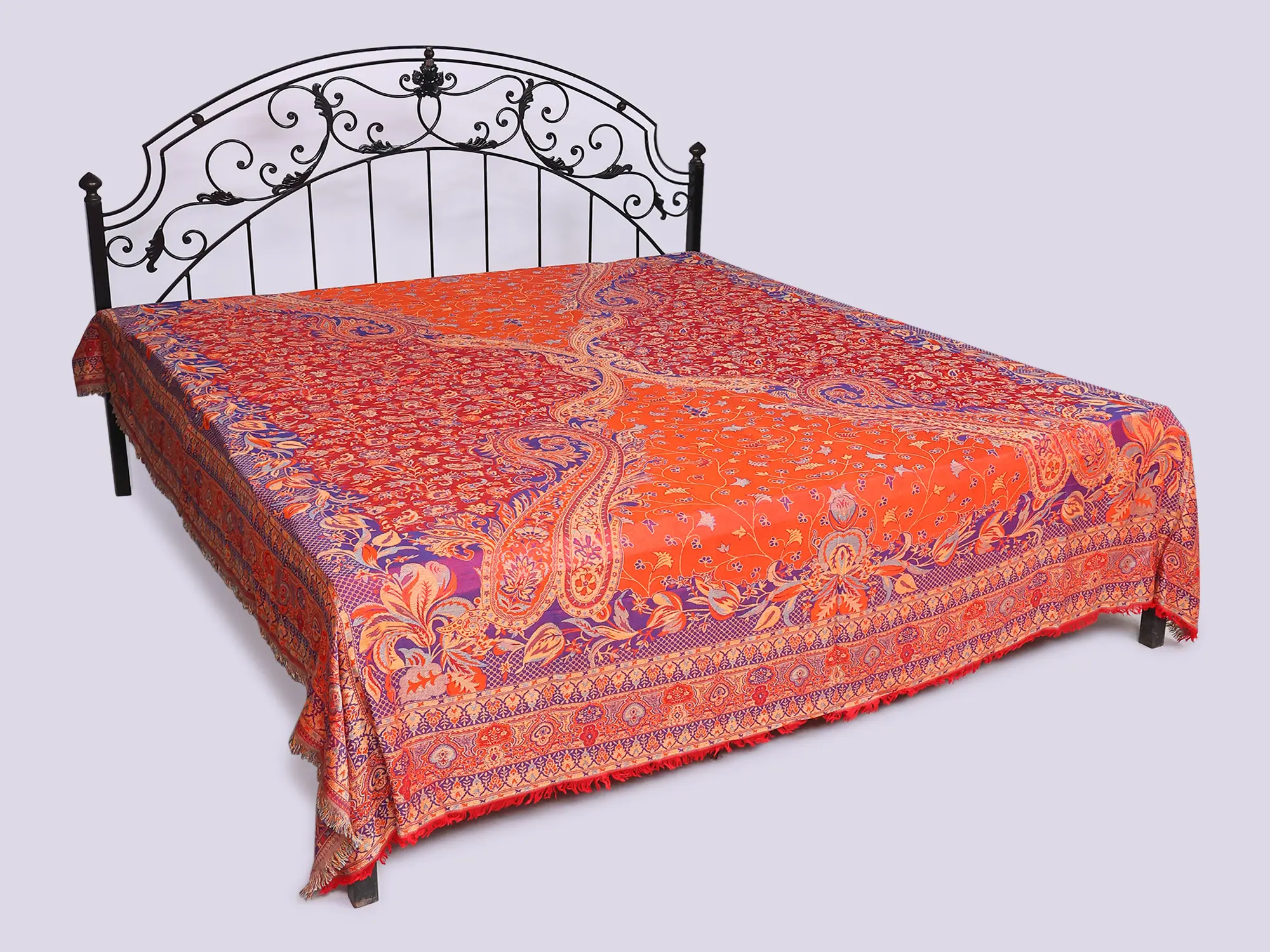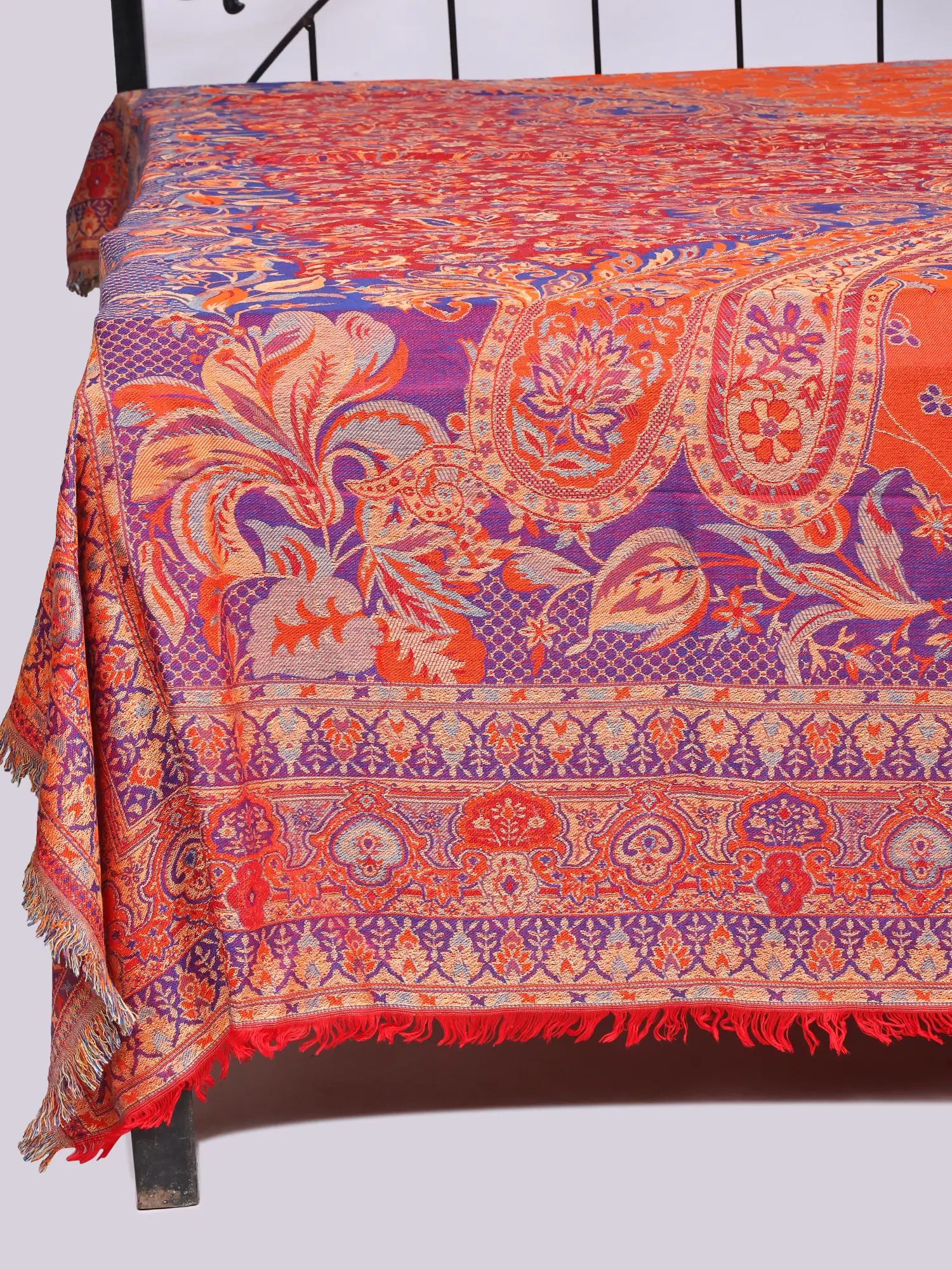 Beyond the bedroom, this magnificent textile lends itself to a multitude of decorative possibilities, enhancing any space with its vibrant presence. Drape it over your sofa for an instant touch of bohemian chic, use it as a striking wall hanging, or as an elegant throw for your armchair. Its versatility makes it a cherished addition to any discerning home.