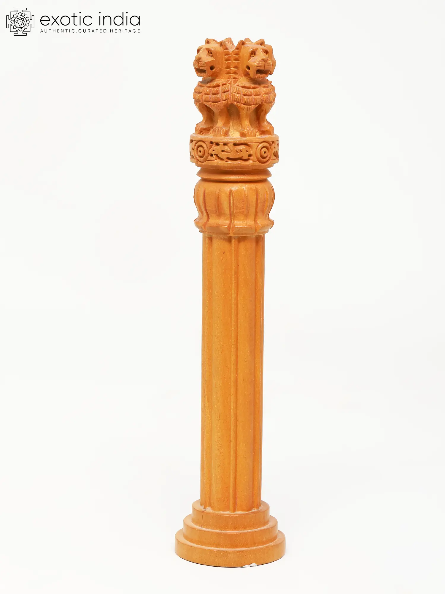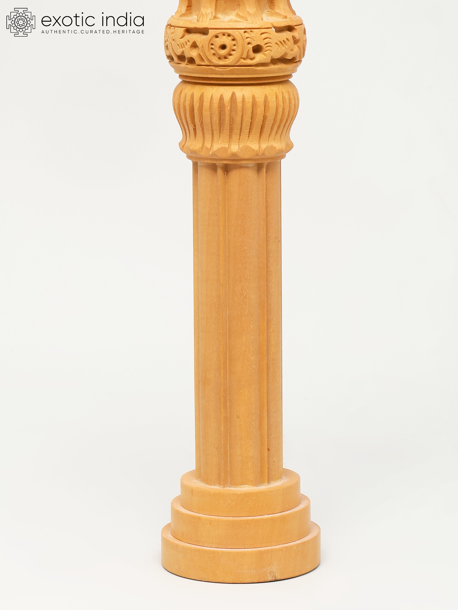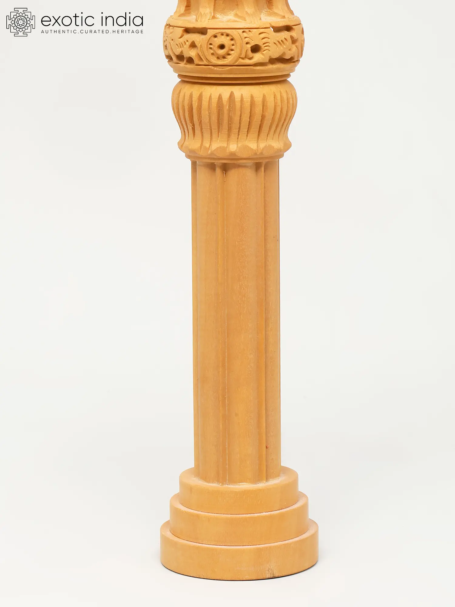 16" Mahagani wood Ashoka Stambh | Handmade | Wood Carving | Table Décor
