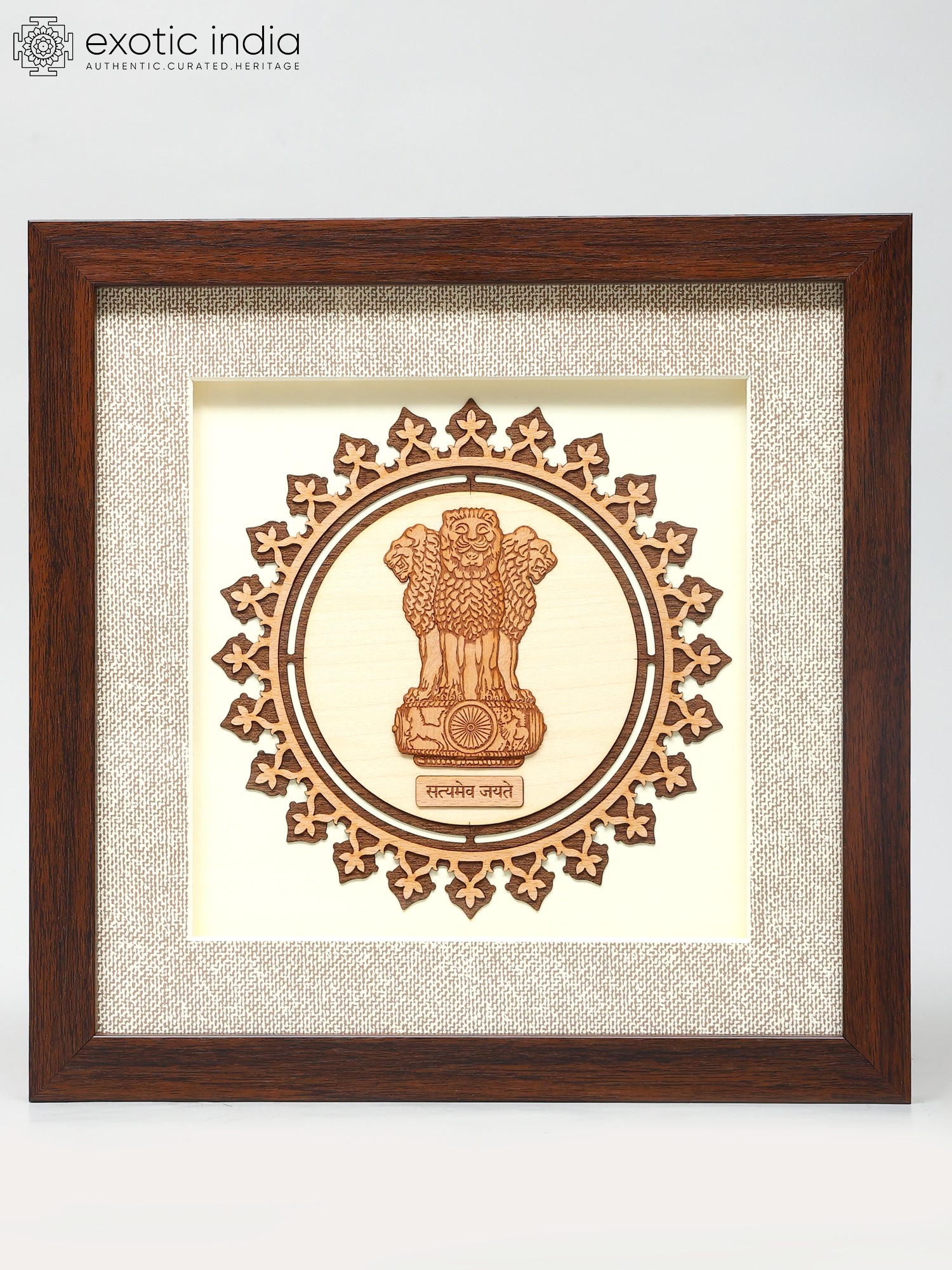 16" Om Shape Modern Ganesha | Wood Framed Brass Sculpture | Wall Hanging