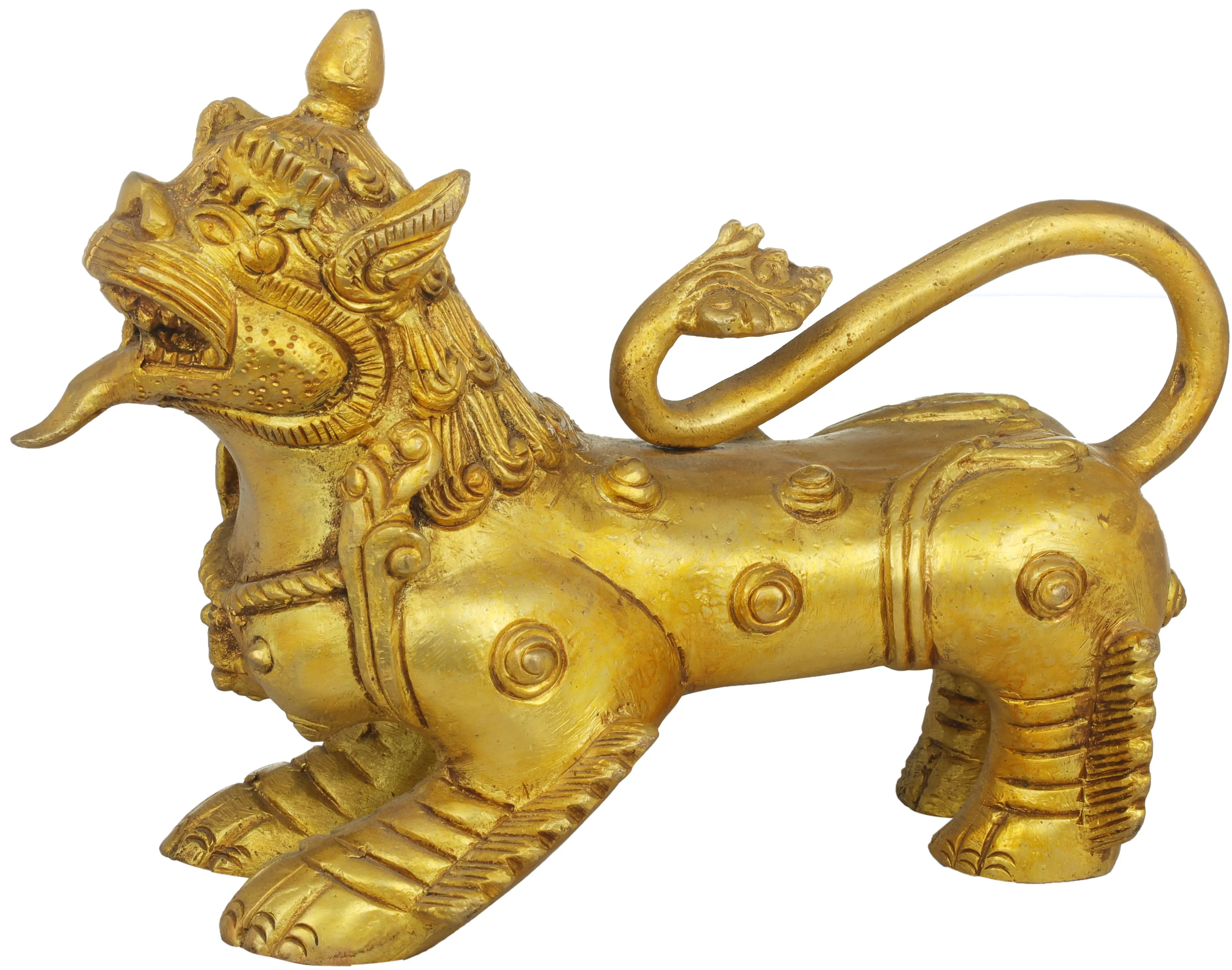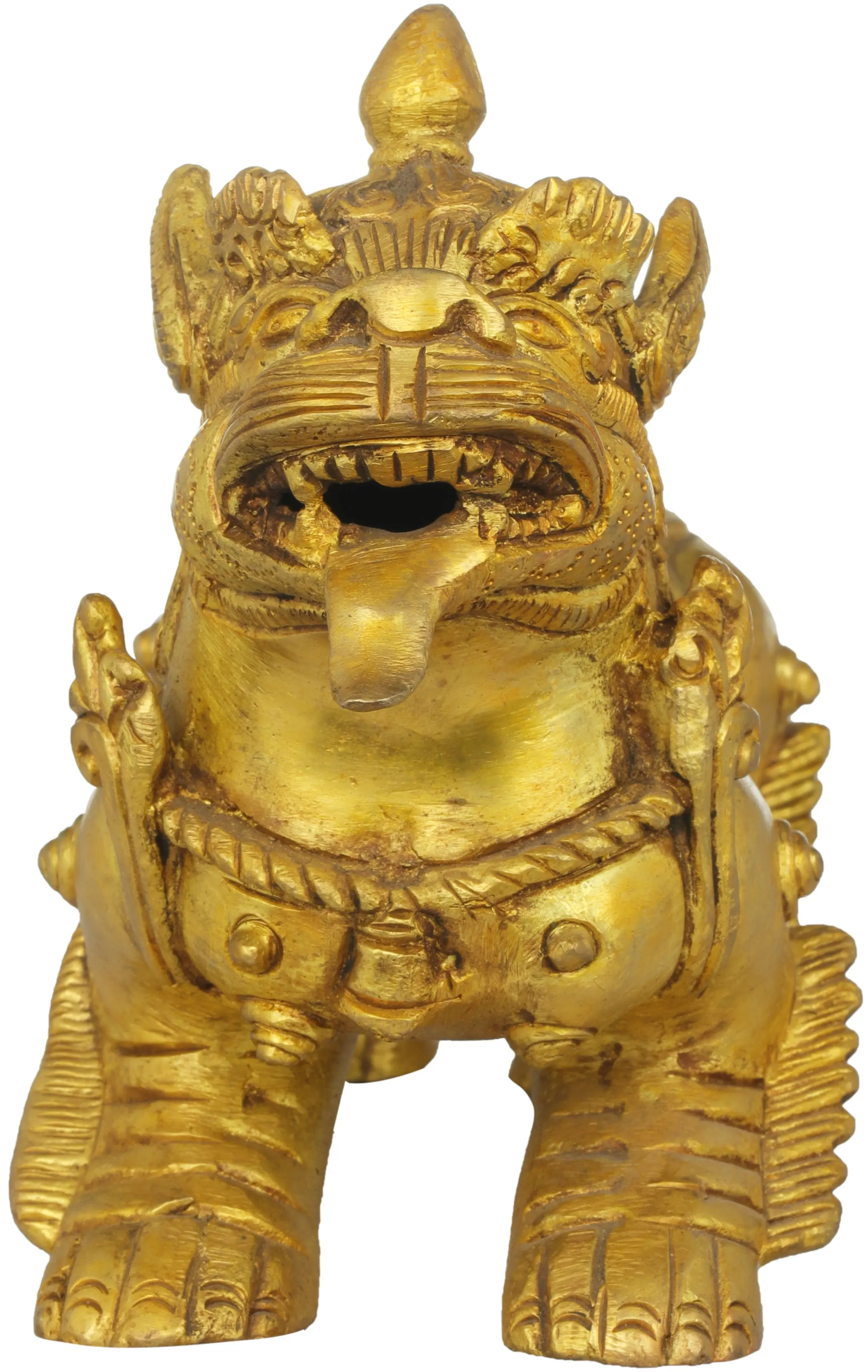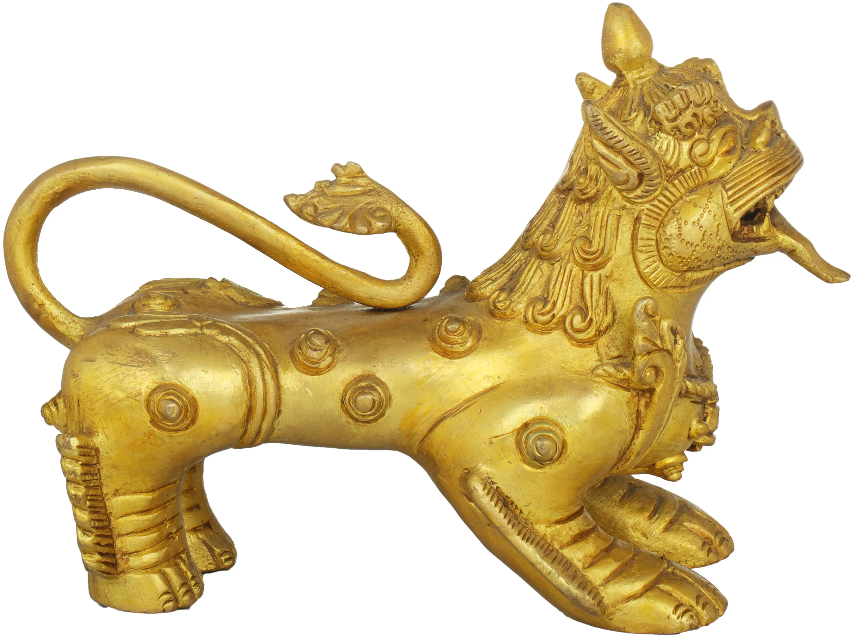 These Majestic Brass Temple Lions are symbolic depictions of Tibetan snow lions, known as Seng in Buddhist tradition. Snow lions are honored in Buddhism for their role as guardians of the Buddha. They support the thrones of numerous Buddhist deities, representing strength, courage, and the protecting power of Buddhas. They are frequently represented in sculptures and artwork. These stunning brass lions beautify holy locations and symbolize the spiritual value of these mythological beasts, with their royal presence defending the sanctity and history of Buddhism.