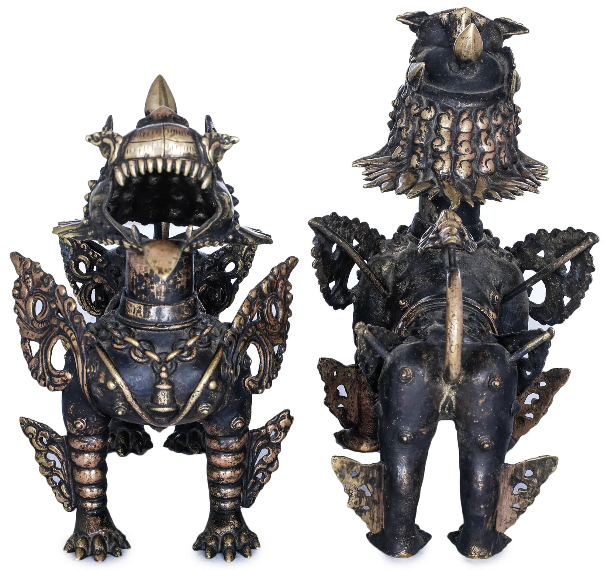 Displaying these temple lions in your home or office is more than just adding a decorative element; it's a statement of cultural appreciation and a nod to the rich artistic heritage of Nepal. Their striking appearance will undoubtedly spark conversation and intrigue, allowing you to share the story and symbolism behind these magnificent creatures. Whether you're an avid collector of Asian art, a spiritual seeker, or simply someone who appreciates unique and meaningful decor, these lions will bring a touch of exotic elegance and profound symbolism to any setting. Imagine them flanking a doorway, guarding a bookshelf, or serving as a centerpiece on a mantel – their presence will undoubtedly transform the atmosphere of your space.