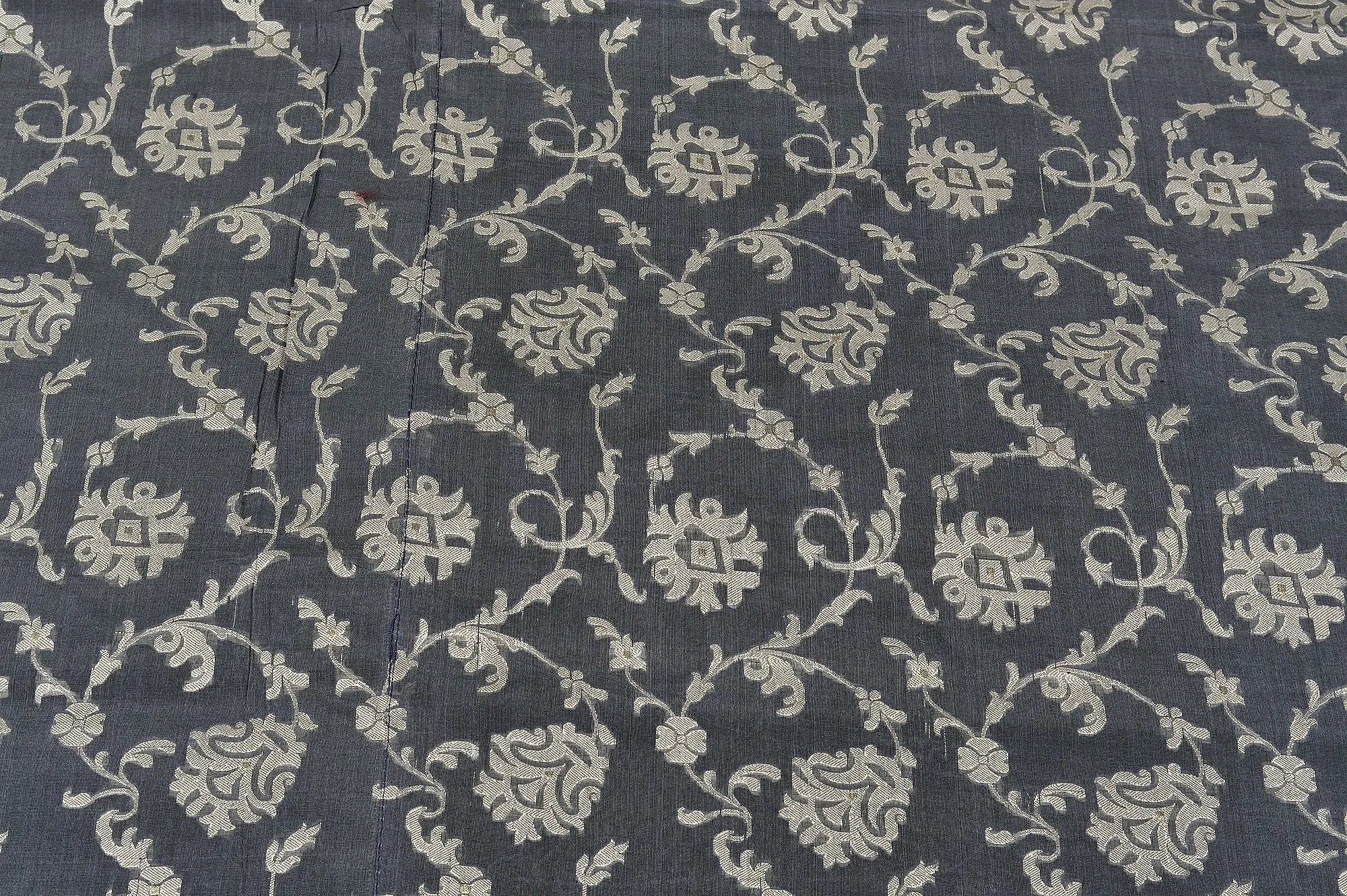 Neutral-Gray Bedspread with All-Over Woven Flowers and Meenakari Border