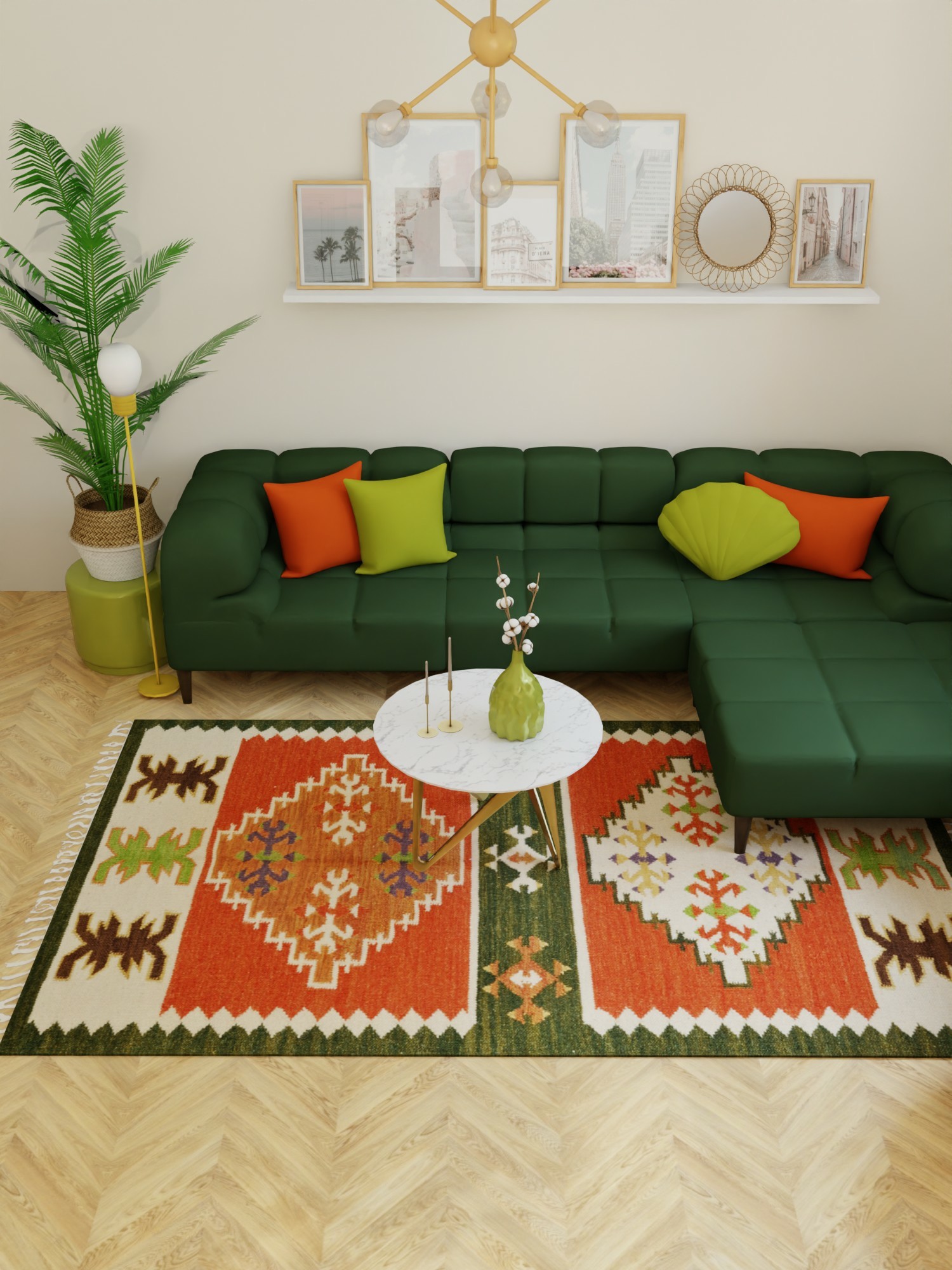 Now any protruding knots and extra threads are cut off using scissors and clippers. Now the craftsmen ensure that all four sides of the carpet and weaves are locked by stitches so that the carpet remains intact and strong.