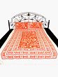 Transform your bedroom into a vibrant showcase of Indian artistry with this bedspread. The crisp, clean lines of the white background are the perfect canvas for the striking orange prints, creating a visually captivating piece that breathes life into any space. The bold color combination is sure to energize your room. This bedspread celebrates the rich heritage of Warli art, a tribal art form originating from Maharashtra, India.