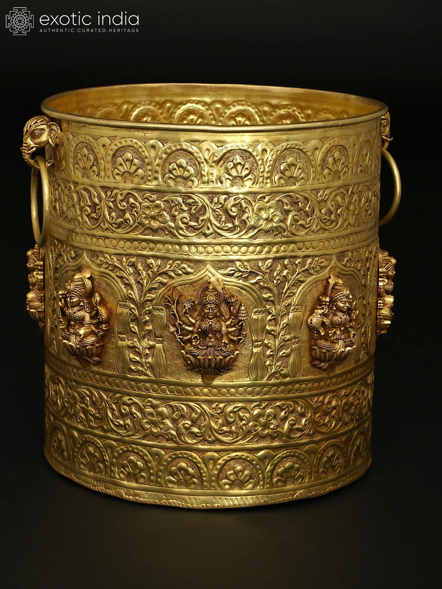 Crafted from durable brass, this planter bowl showcases traditional artistry and divine iconography.